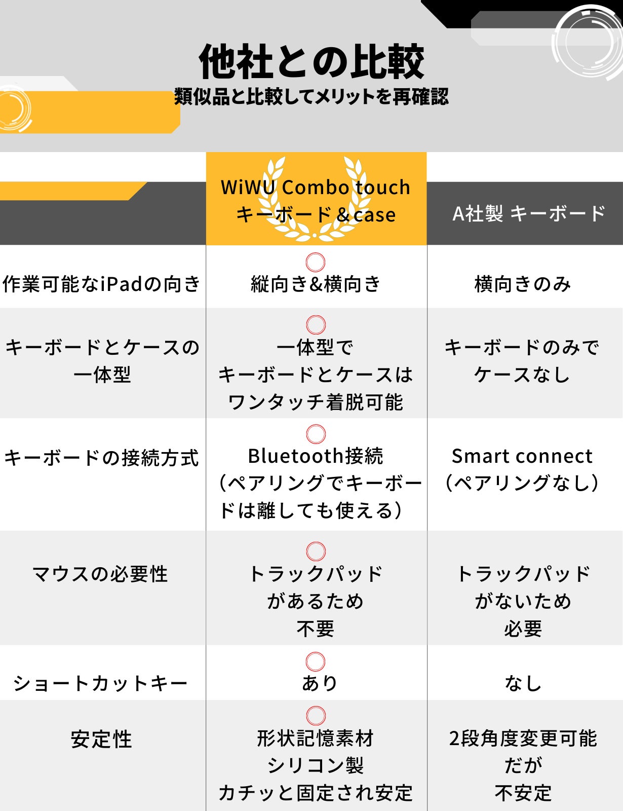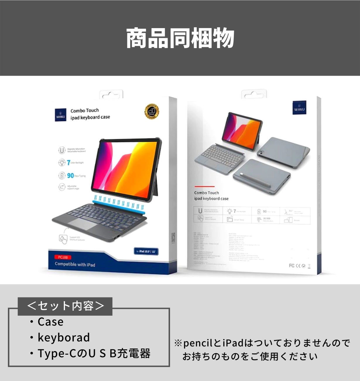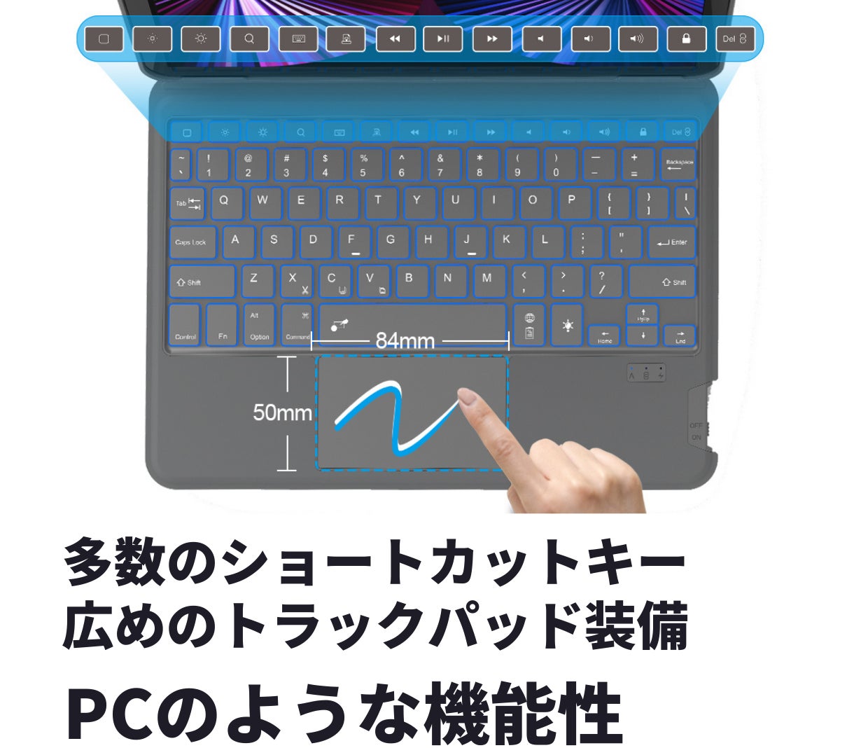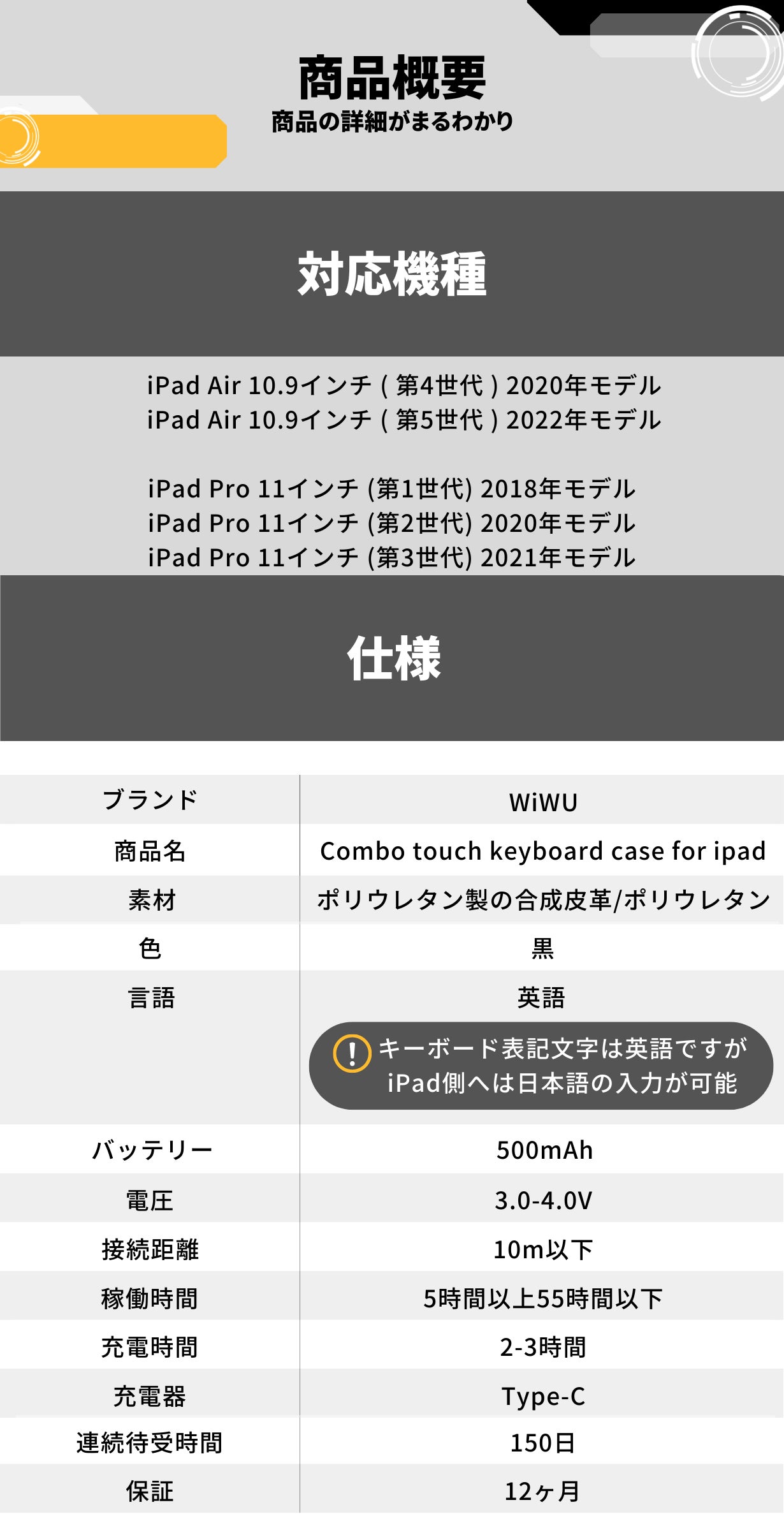 ・使用上の注意事項 ⇒ iPadとキーボードをマグネット接続して開いた状態で、キーボードのみを持って全体を持ち上げる事はできない。