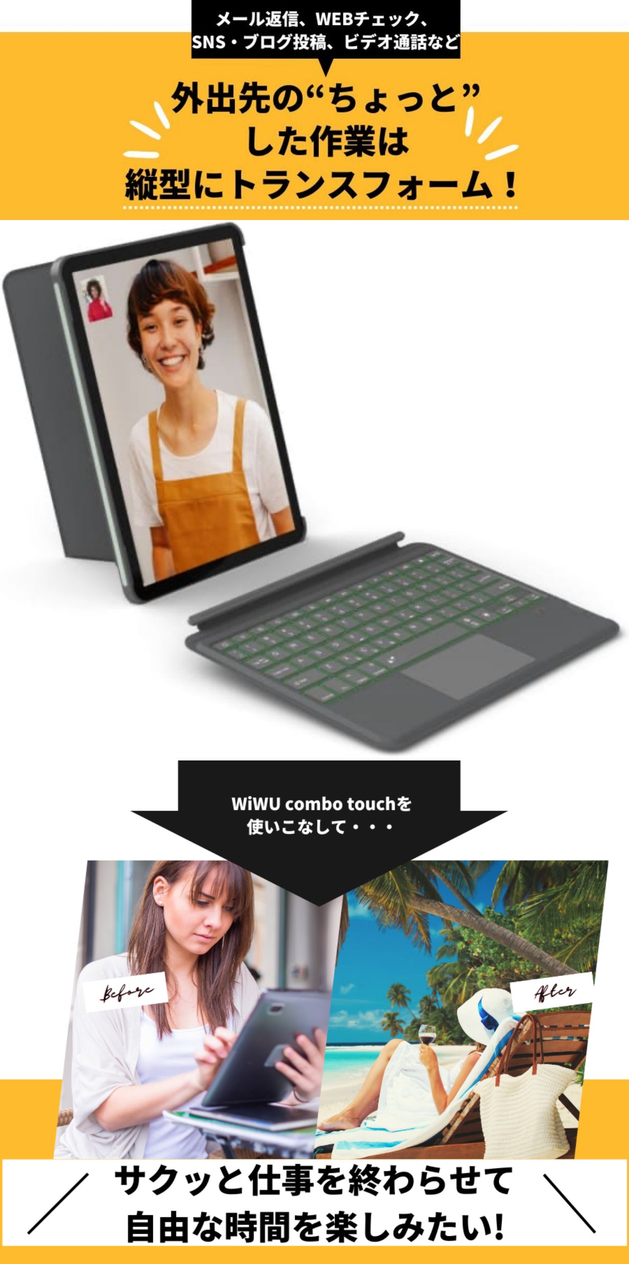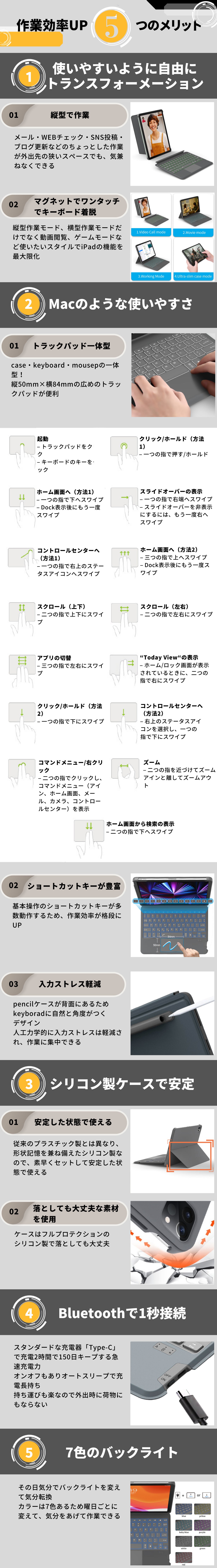ノートパソコンを持ち歩くのは、リスクを伴います。仕事の要となるノートパソコン、できれば外に持ち出して動きたくはありません。しかも重いので、ザックを担いだりおろしたりする衝撃で、パソコンが痛まないはずがありませんね。中には小型軽量化したノートパソコンに変えて持ち歩く人も。でも、それはそれで、破損や故障の懸念不安は全く解消されません。パソコンが機能しなくなれば仕事もそこで止まってしまいます。それは凄い恐怖でしかありません。そんな地獄から救ってくれるのが、殆ど今まで遊んでたタブレットです。日本では何と15%以上の方がiPadを愛用してくださっております。でも、このタブレットもこのままでは何も助けてくれません。そんな時、現れたのがキーボードケースです。が、タブレットとしての使い勝手が悪いので、一部の方達だけの需要にとどまりました。今回登場するこのモデルは使い勝手においても、更に上のレベルを達成しました。タブレットがパソコン以上の機能を持つ存在に大変身です。