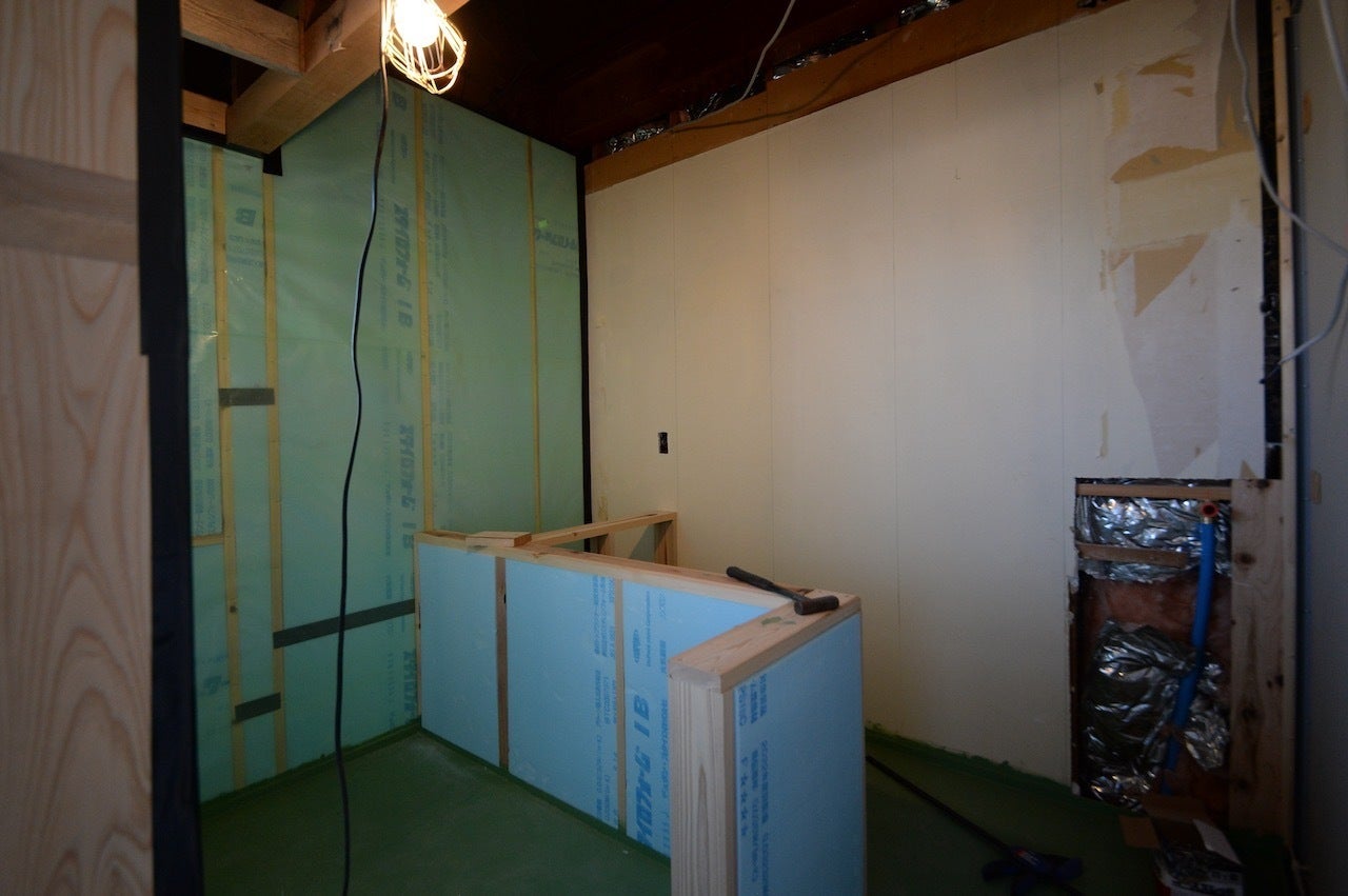 サウナ室となる予定の部屋。作業も進んできました