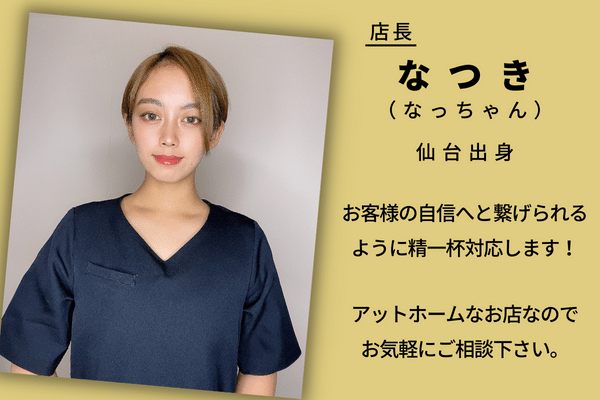 仙台のみなさんをより美しく、そして自分が生まれた地、仙台で事業を起こし、盛り上げていくことで、関わるみなさんをHappyにしていきたいです。