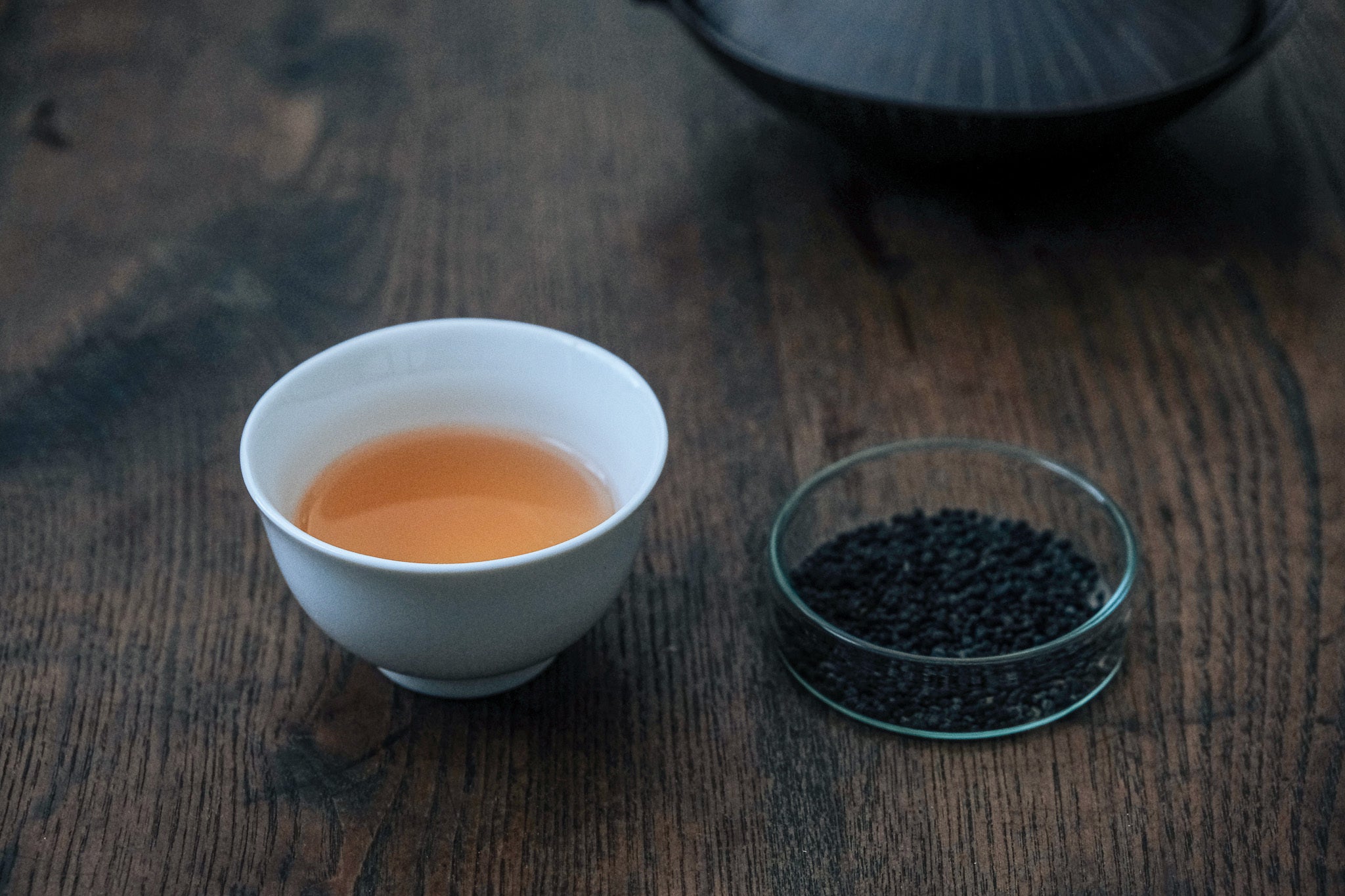 5年ほど寝かせた白茶のような、枯れ草やクルミのような落ち着いた香りです。ほうじ茶のような焙煎の香りと、武夷山烏龍のような奥深さがあります。とろみが比較的に強く、飲みごたえがあります。全体的に落ち着いた香りですので、夜などリラックスしたいタイミングで楽しんでいただけます。