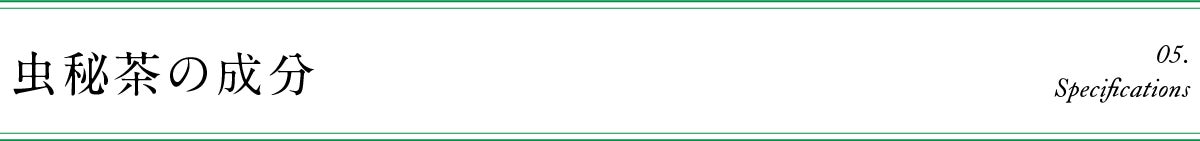 虫秘茶:ちゅうひちゃ とは、植物の葉を食べた蛾の幼虫(いわゆるイモムシ・毛虫)の“糞(ふん)”をお茶にしたものです。こう言うと驚く方も多いかもしれませんが、“糞”とは葉が虫の体内で消化(発酵)されて出てきたもの。実は一般的な中国茶や紅茶と似た原理をたどっております。実際に飲んでいただくと、その芳香や滋味深い味わいに、もう一度驚かれると思います。