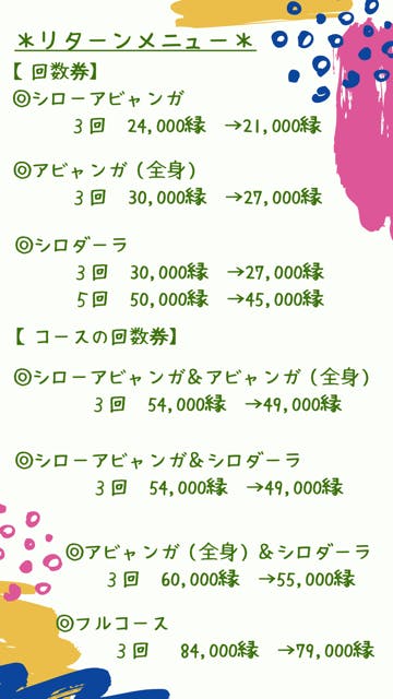 アビャンガ、シローアビャンガ、シロダーラの施術チケットetc...