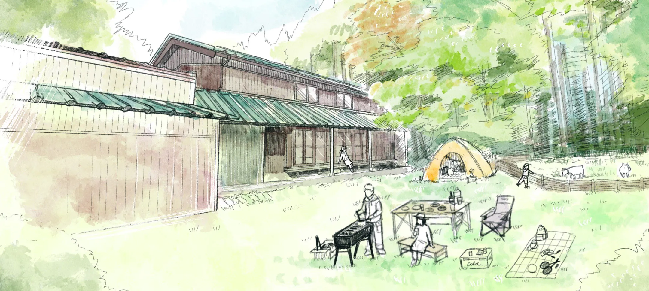 家を使っていただくだけでなく、庭でテントを張ってキャンプをしたり、バーベキューをすることができるようにもしたいと考えています。