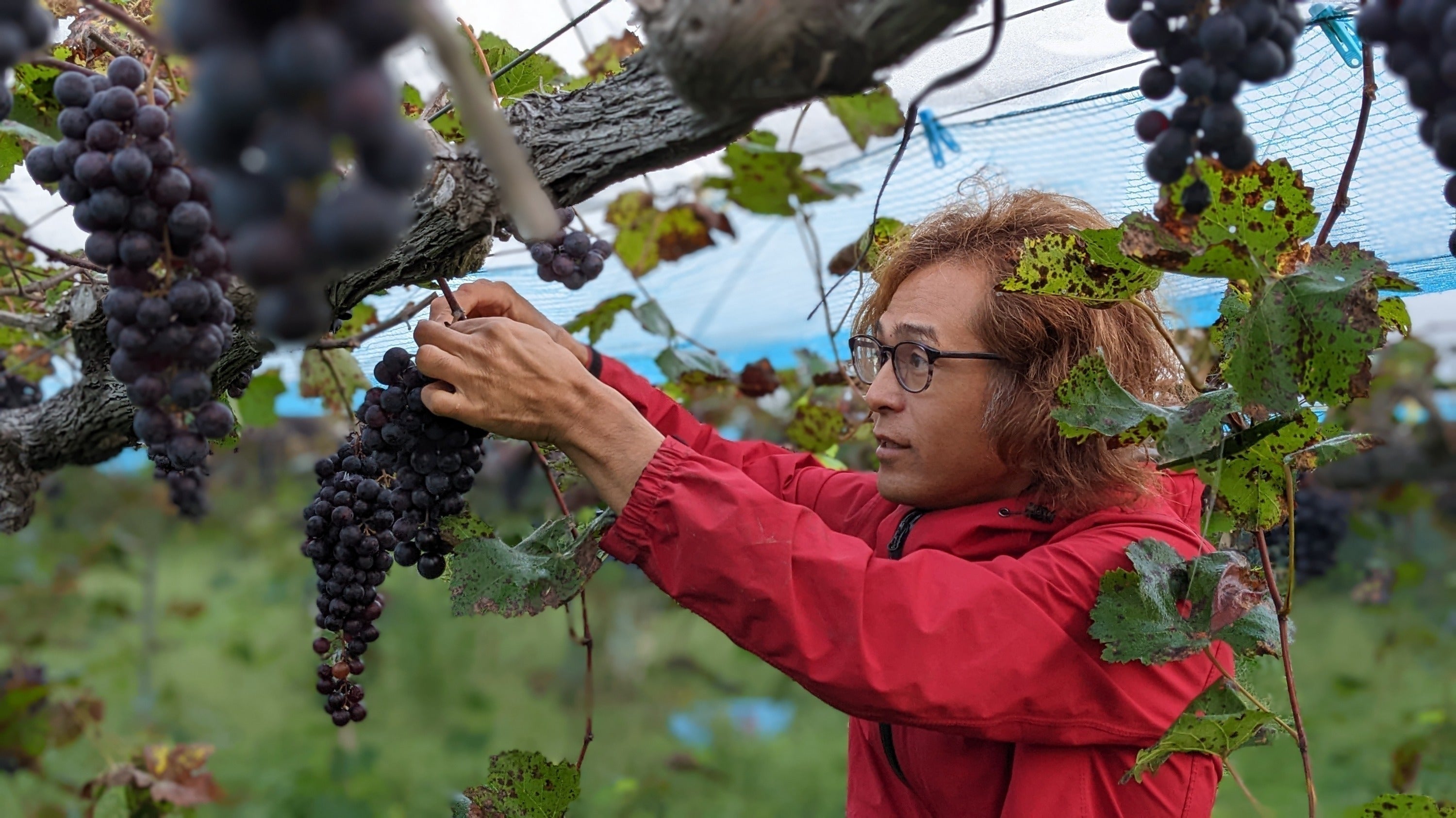 栽培期間中は農薬を使わず、手間はかかりますが草刈りや虫の捕殺などでぶどうが健康に成長できる手助けをしています。