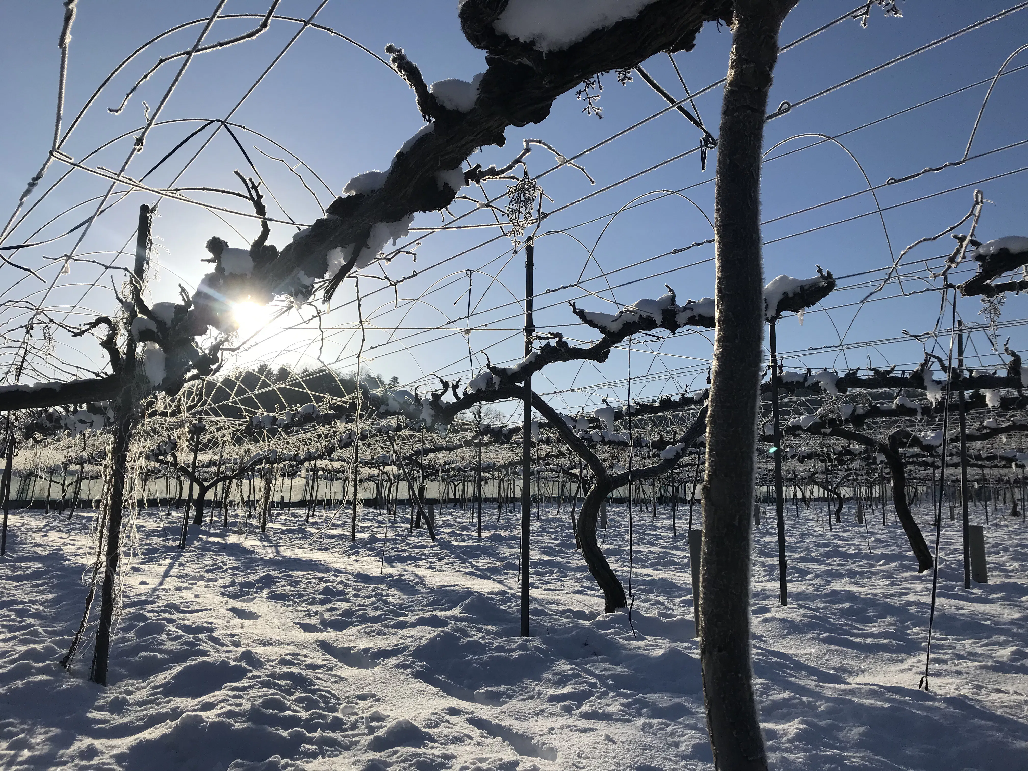 写真は本日のぶどう園です。まだまだ雪が残っております^^