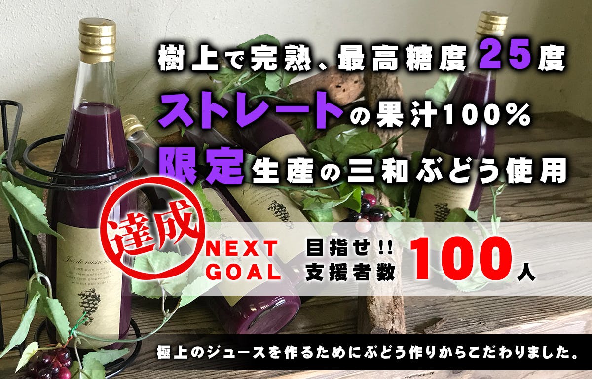 こんにちは。 みなさまのあたたかいご支援をいただきまして、総支援者数100人を達成することができました!ほんとうにありがとうございます。 一人でも多くの方にこのぶどうを通じて心を繋げてもらえたらと思っております^^