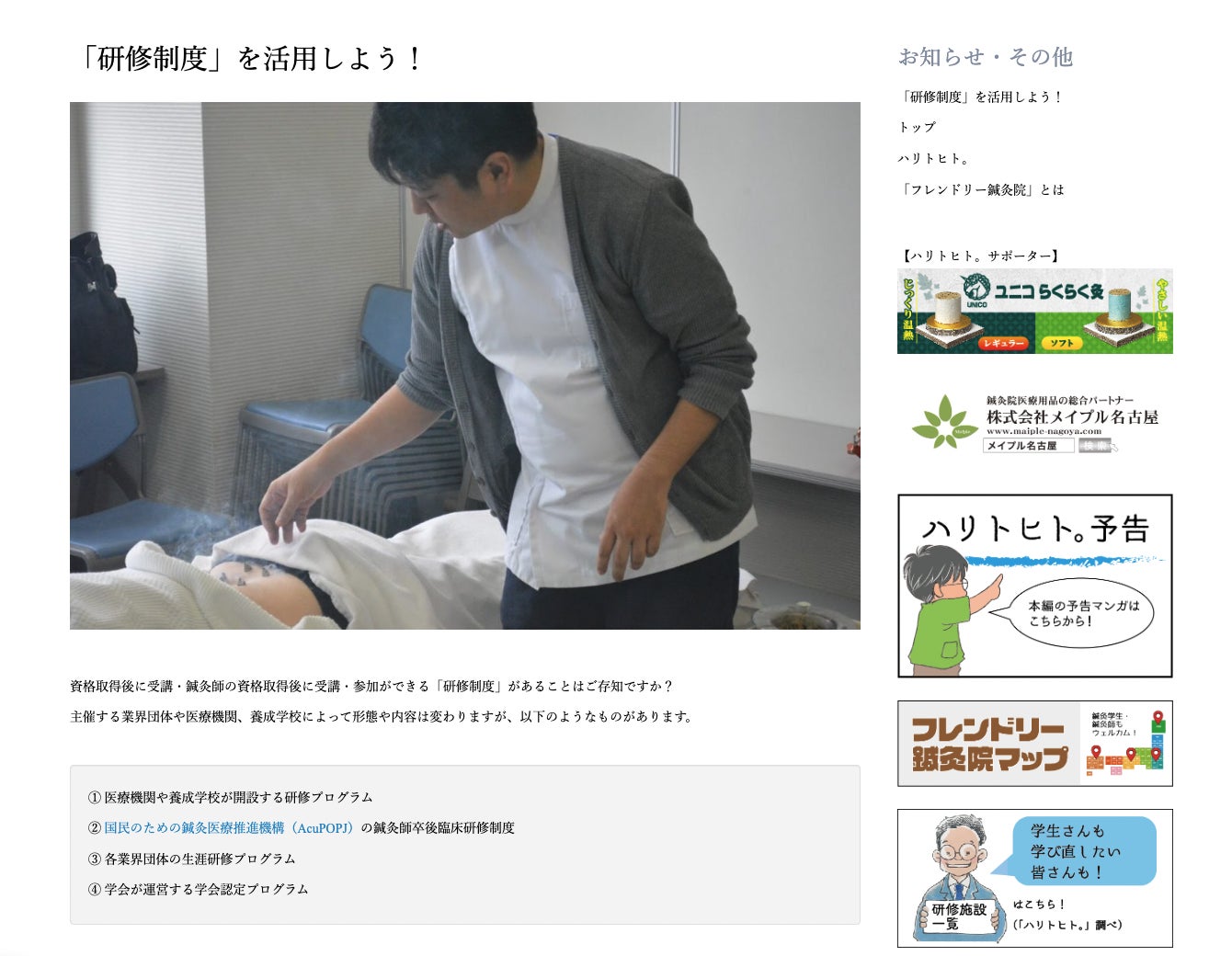 資格取得後に受講・鍼灸師の資格取得後に受講・参加ができる「研修制度」を一覧にして、掲載しています。