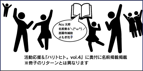 感謝を込めて『ハリトヒト。vol.5』にお名前を掲載させていただきます。(ペンネーム可)