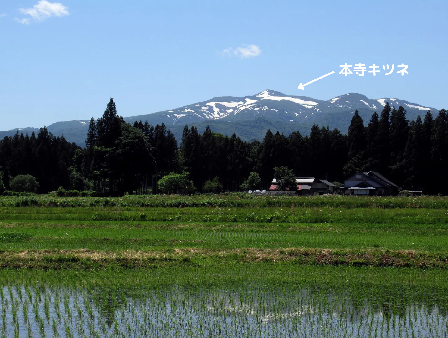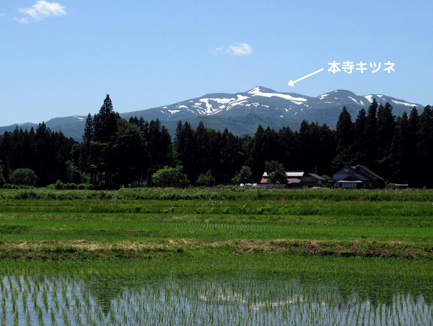 岩手県側の山の残雪がキツネの形に見えることから「本寺キツネ」とも呼ばれ、この本寺キツネが見えると田植えの時期が来た合図になります。
