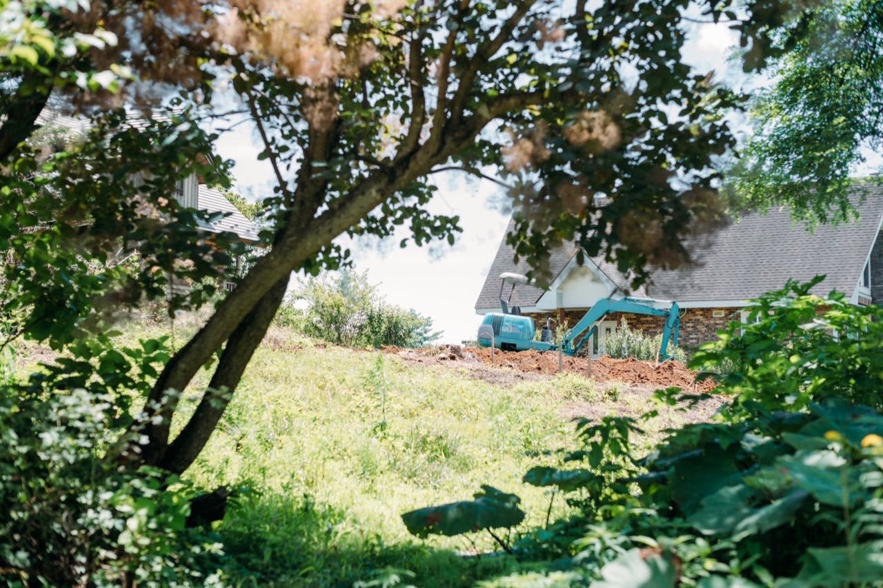 ↑窪んだ地形に咲くスモークツリー。屋外でも食事が楽しめる場所にしていく予定です。