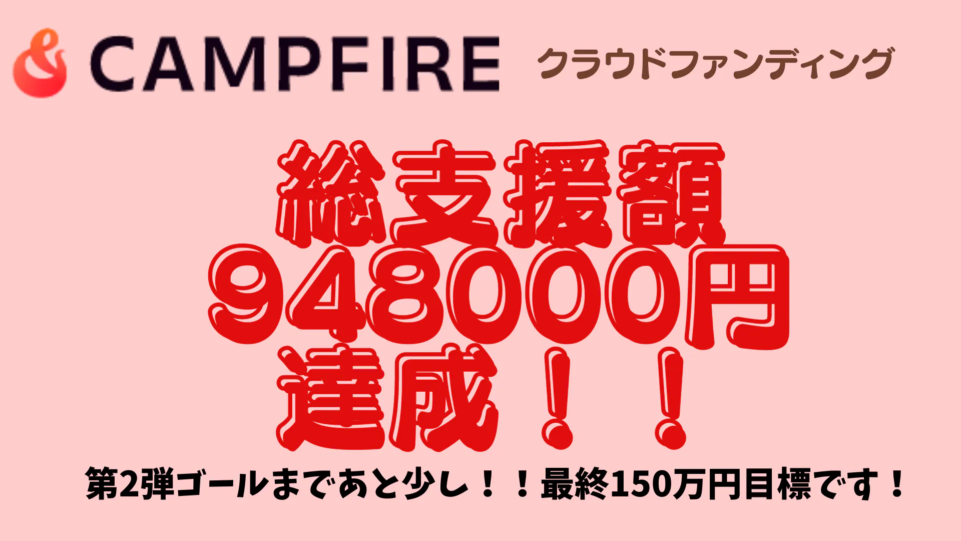 ありがたいことに!!!達成率189%、総支援額948,000円まで来ました!!!