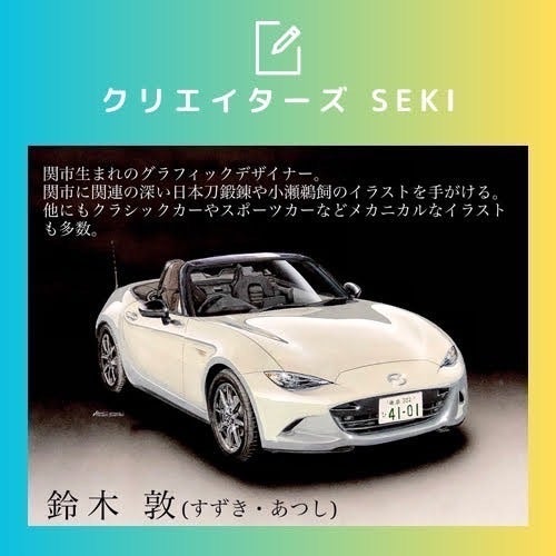 愛車のロードスターのイラストを、先日関市長へプレゼントしたことでも有名。