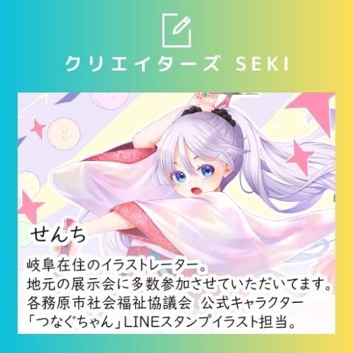 リーターン品の一部にある、クリエイターズSEKI(6名)によるラベルデザインのお一人。ご紹介するのはこちらの方。せんちさま岐阜県在住のイラストレーター地元の展示会に多数参加!各務原市社会福祉協議会公式キャラクター「つなぐちゃん」Lineスタンプ イラストを担当。どんなラベルデザインが上がって来るのか、楽しみです!