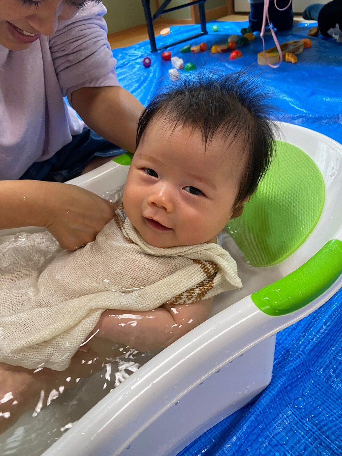 赤ちゃんの湿疹も徐々に改善がみられてきて沐浴が人気イベントになってます。