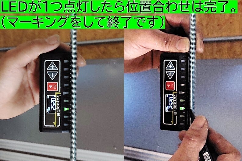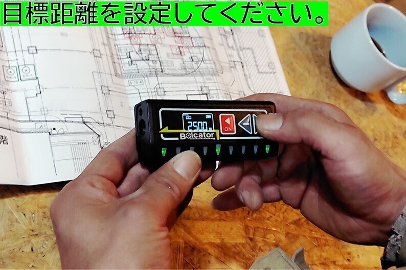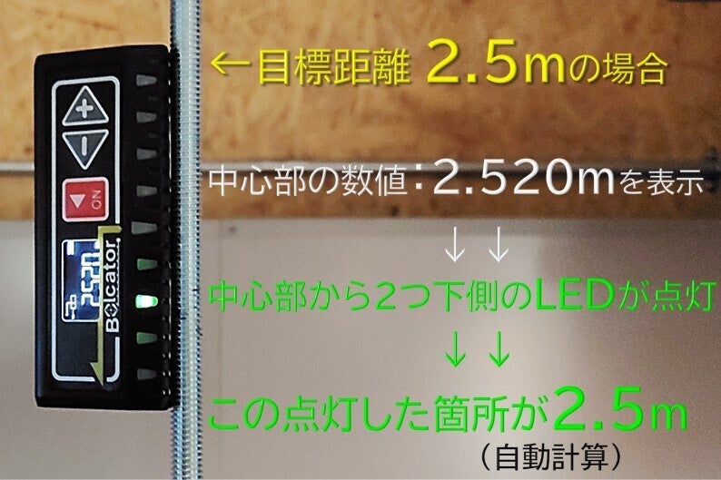 ⑦確定:LEDが1つ点灯した箇所で止めてください(目標距離が確定です)