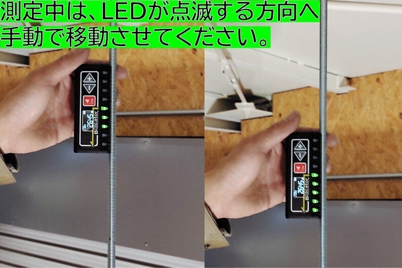 ①本体を上下いずれかに少し移動させてLED点灯箇所を確定させる