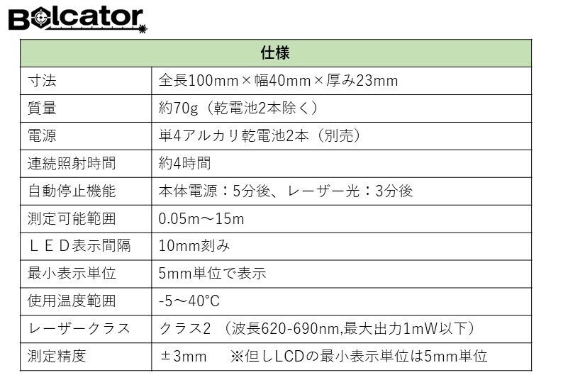 ・測定精度について:レーザーモジュールの仕様は±3mm(5m)ですが、