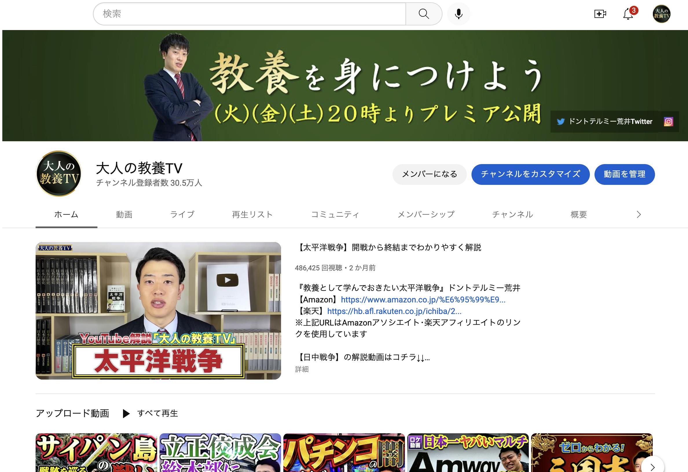 私は登録者33万人のYouTubeチャンネル『大人の教養TV』を運営しています!