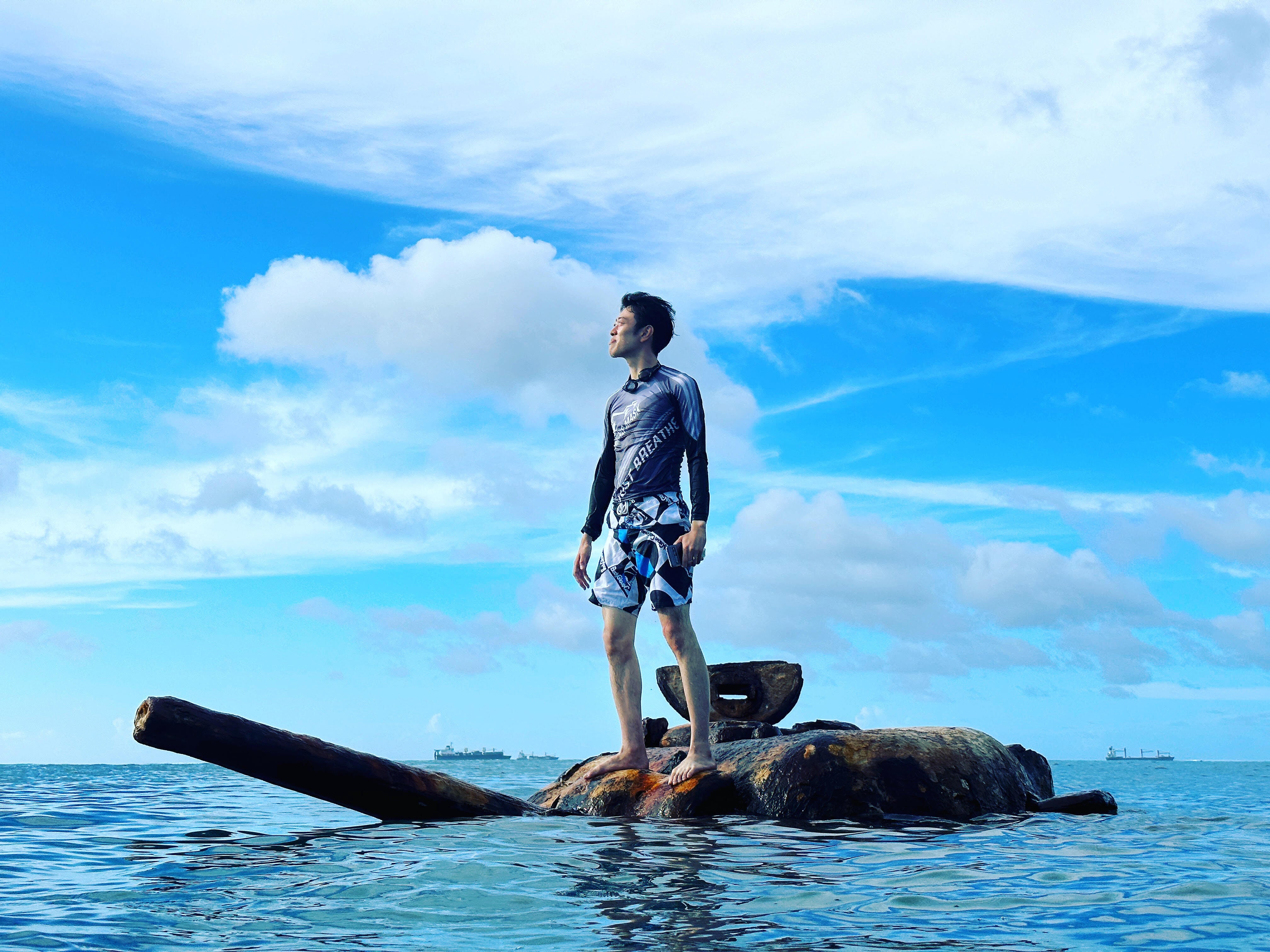 …当時使われていた駆逐艦が座礁しており、いまでも甲板に上がることができます。近くには米軍の輸送船も座礁しています。