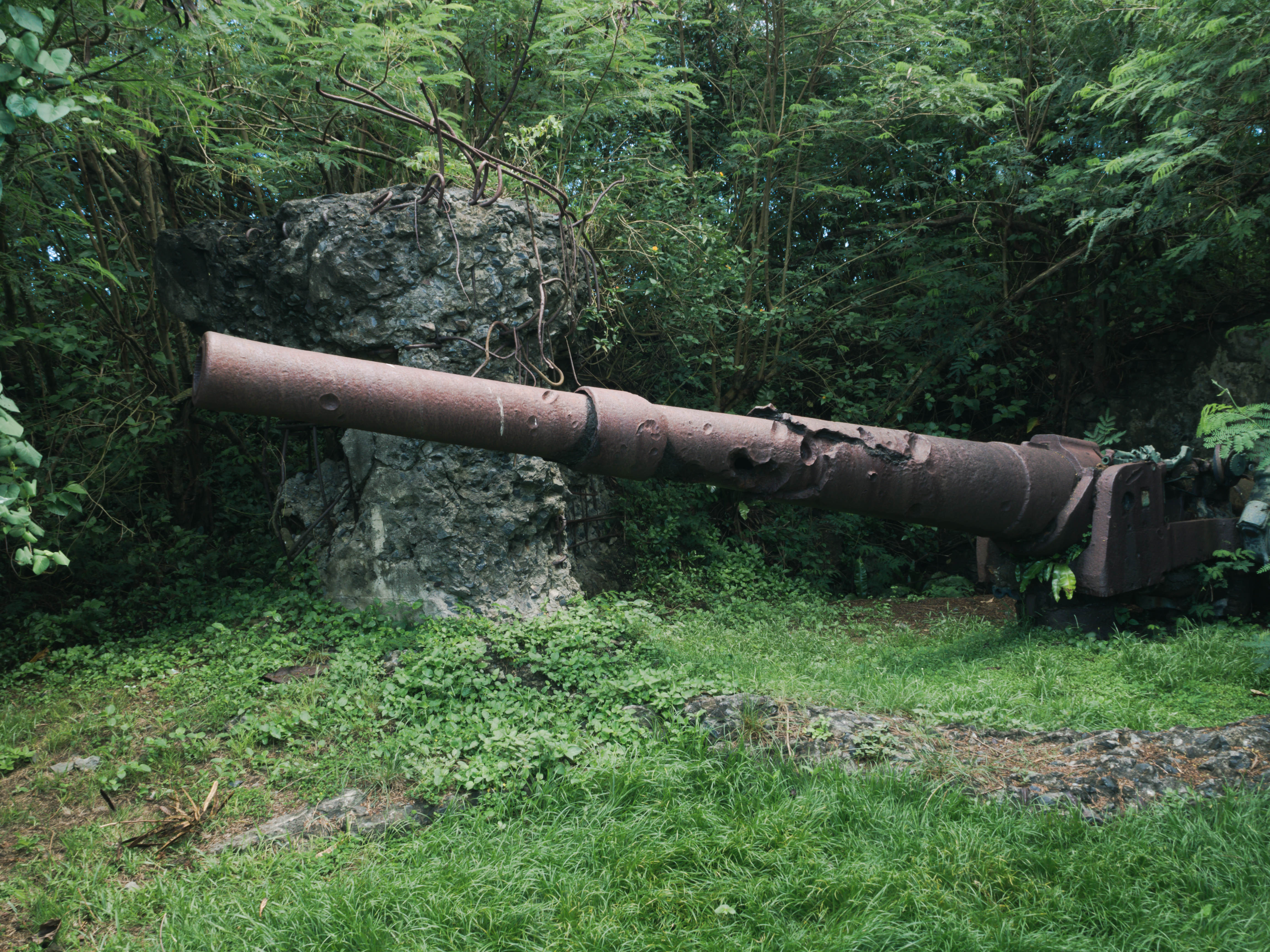 …上陸するアメリカ軍に対抗するために設置された日本軍の砲台跡です。アメリカ軍による激しい攻撃を受け、砲台には今も不発弾が刺さったままになっています。