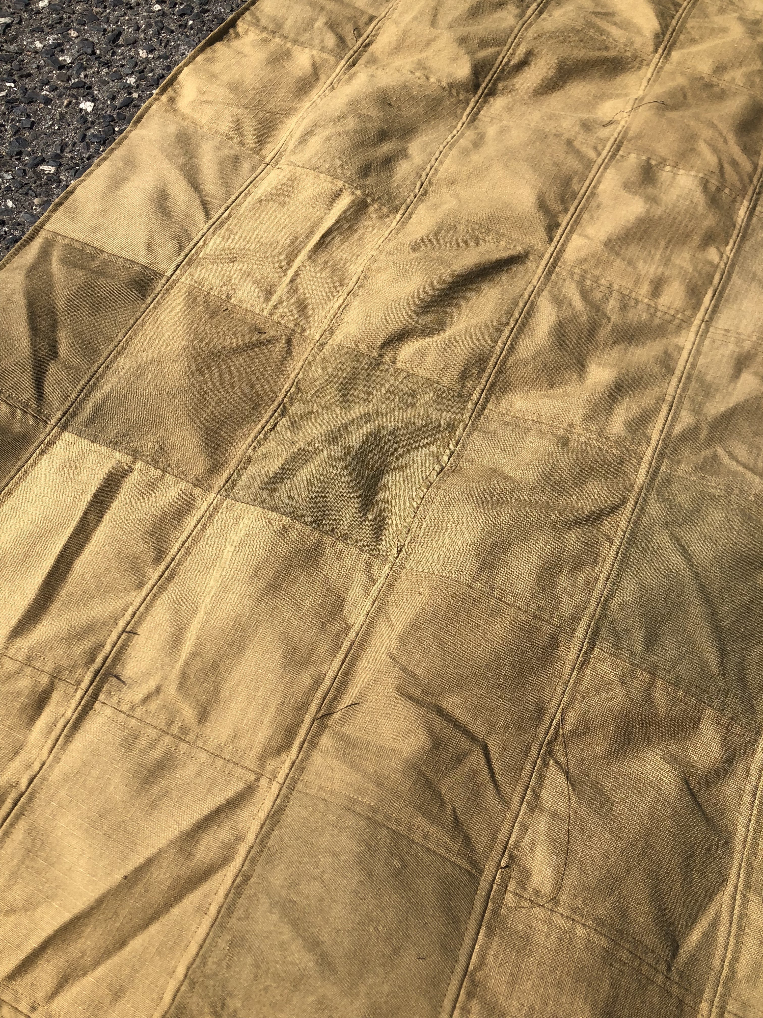 弊社では廃棄防火服を正方形に裁断にし組み合わせる(パッチワーク)方法で、無駄なく効率よく製品をプロデュースしております。