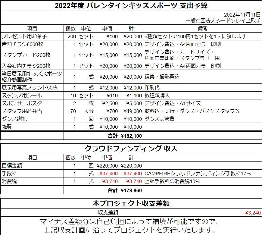 以上のことから私たちはクラウドファンディングを行い、全国の支援者様からのご支援を大切に受け止め、必ずバレンタインキッズスポーツを実行することを約束します。