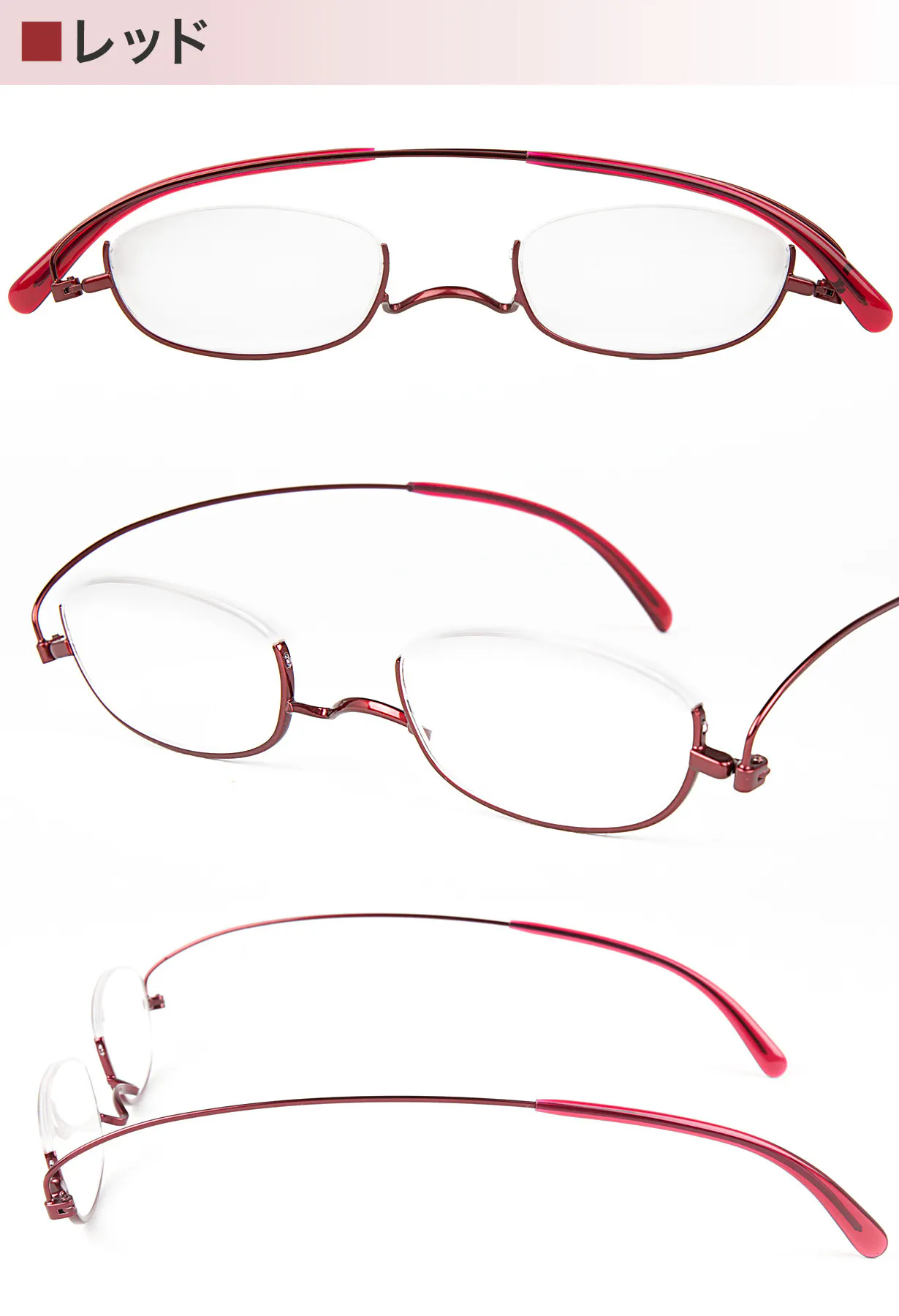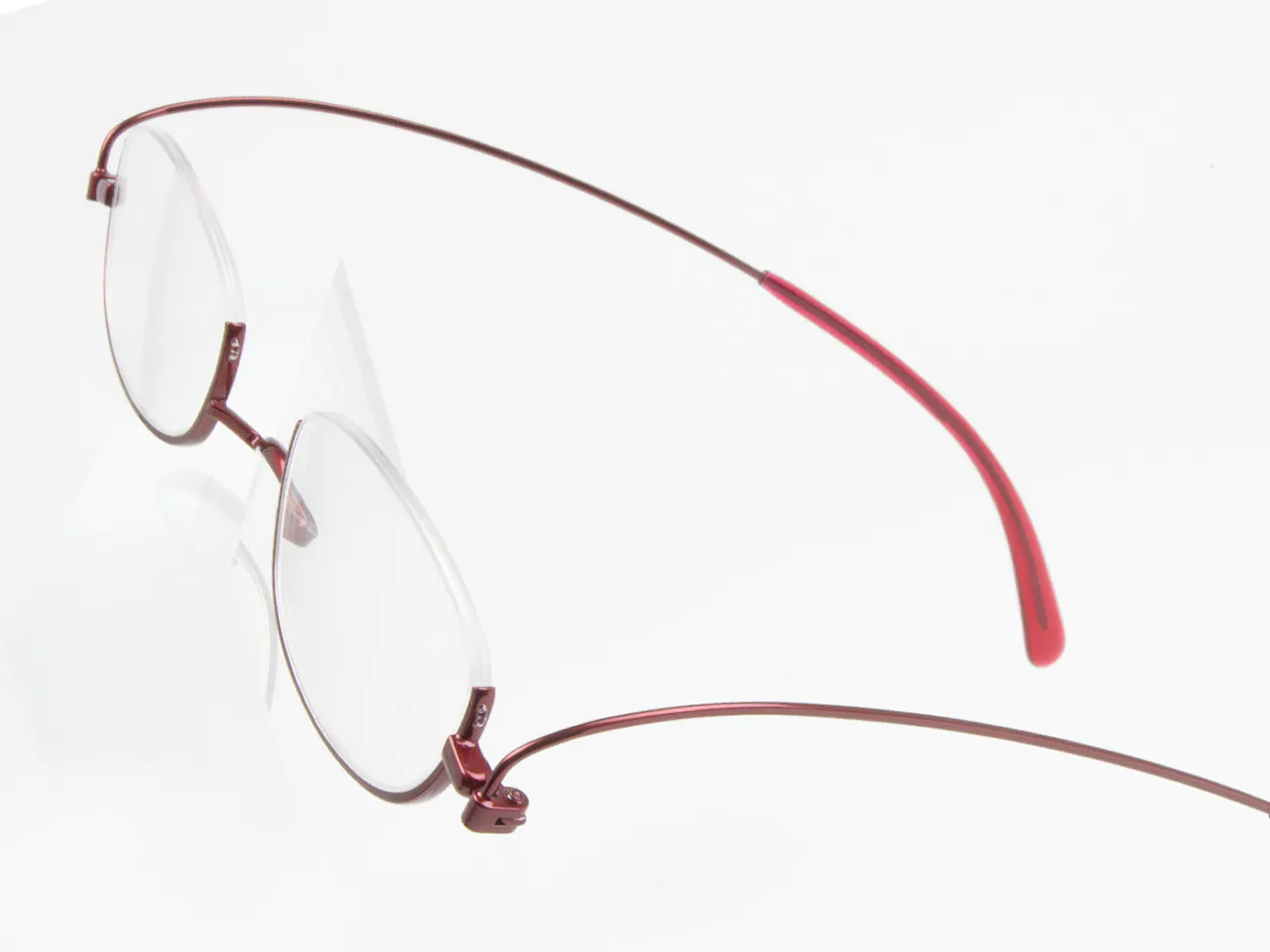 ワインのような上品な深みのあるレッド。細身のフレームなので程よい存在感と遊び心を演出します。