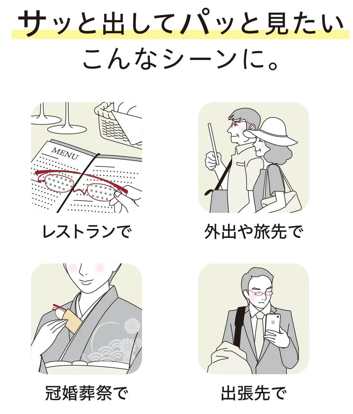 おしゃれに見えるだけでなく実はアンダーリムは『リーディンググラス』としてピッタリなデザインです。