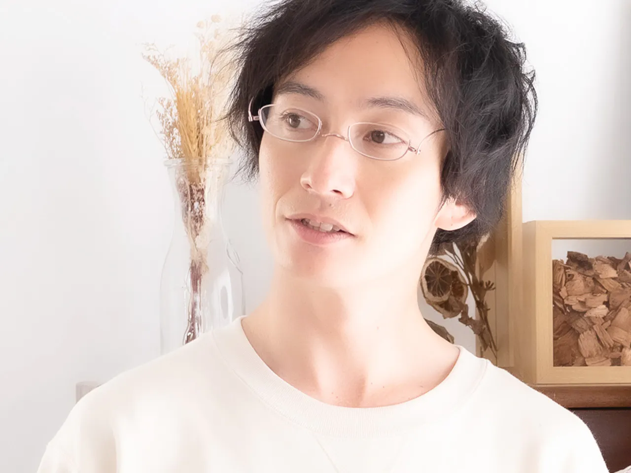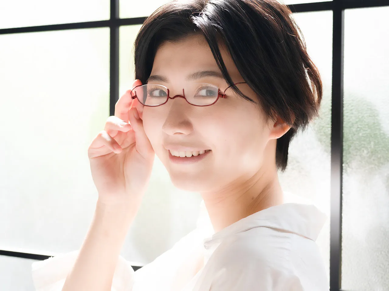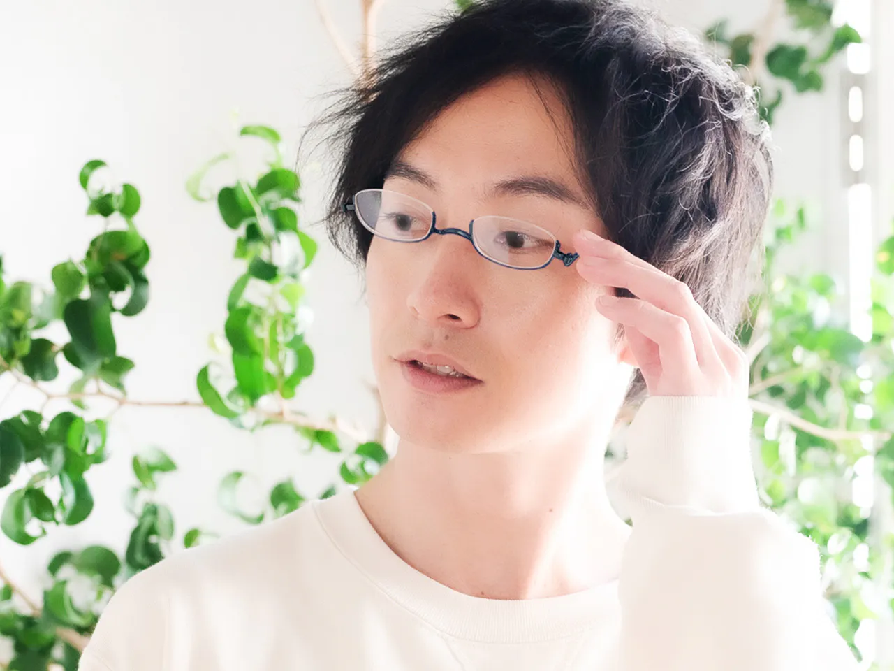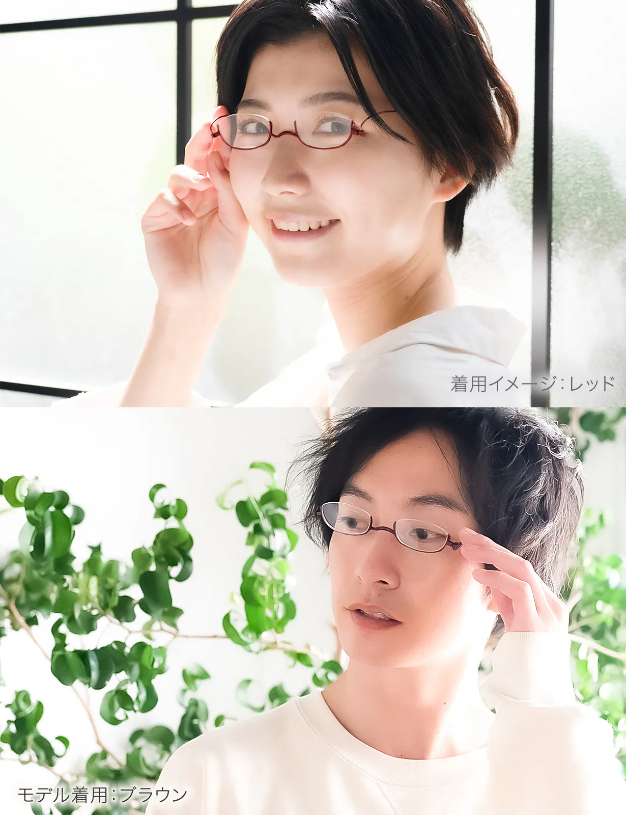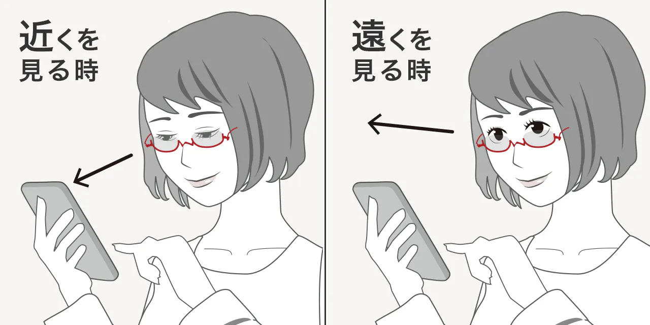 フレームの下側だけに枠があるアンダーリムは、鼻の中腹に少しずらしてかければ、【手元を見るとき】はレンズを通してはっきりと、【遠くを見るとき】は目線を上げてスッキリと見えます。