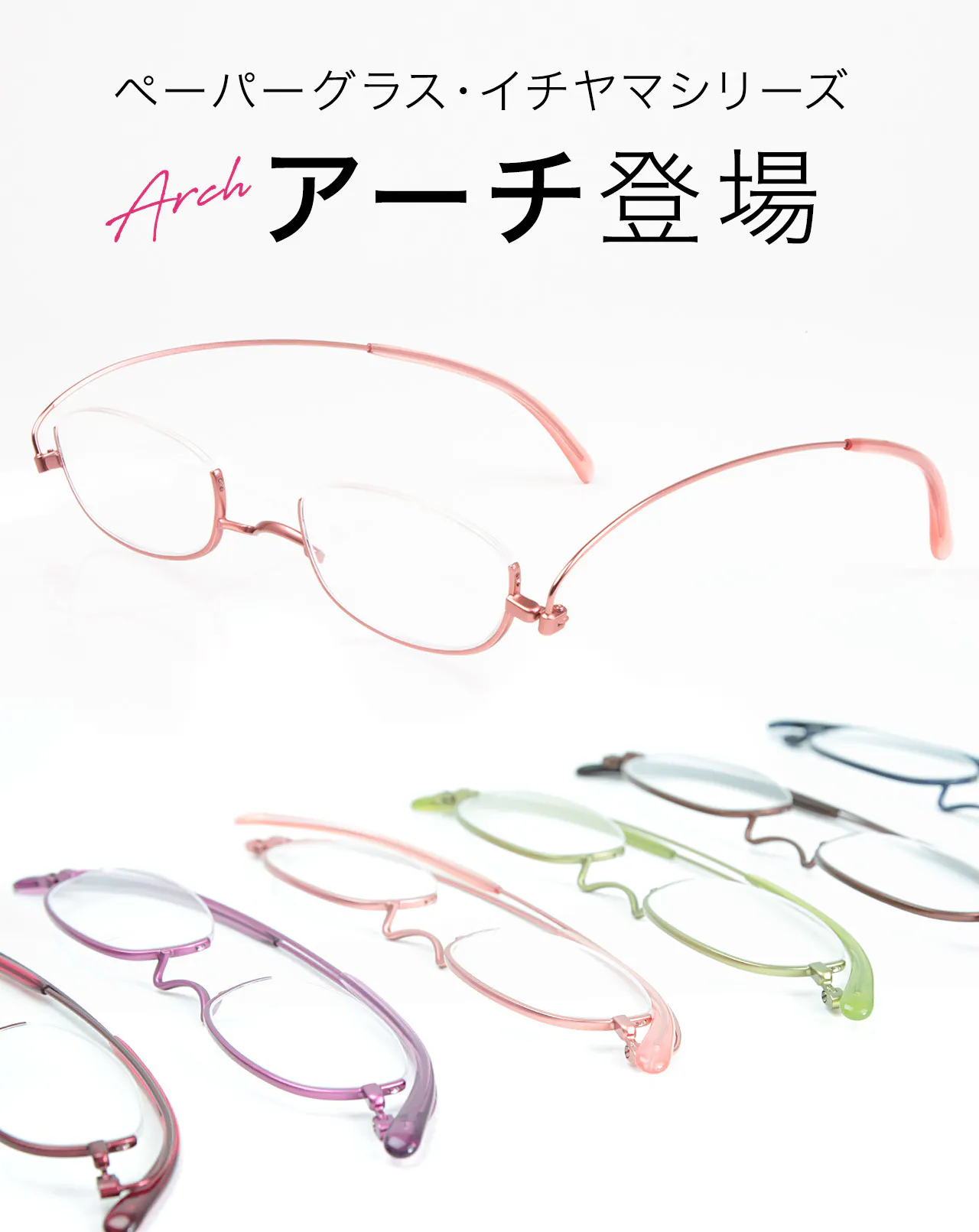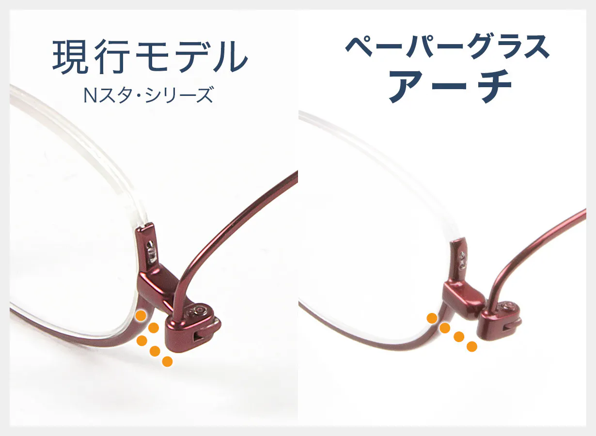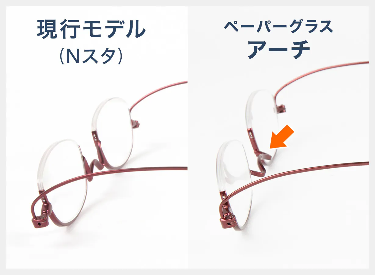 ペーパーグラスの現行モデルを見直し、ブリッジに鼻によりフィットする「イチヤマ」を採用したイチヤマシリーズ『アーチ』が登場。ブリッジに奥行きがあることで、すっきりとした掛けた姿にもなるモデルです。