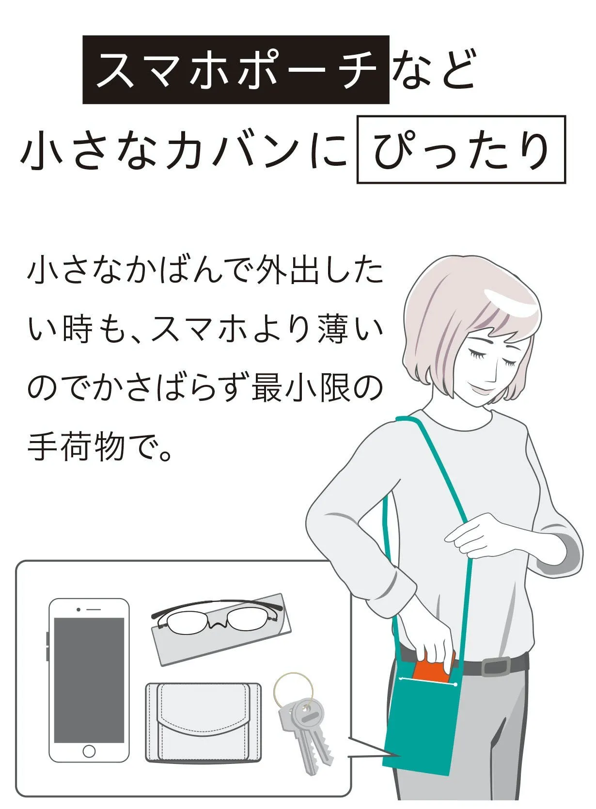 薄くてスリムなので使わない時は、長財布やペンケース、手帳、胸ポケット、スマホポーチにもかさばらずに収納でき、持ち運びにも便利で収納に困りません。