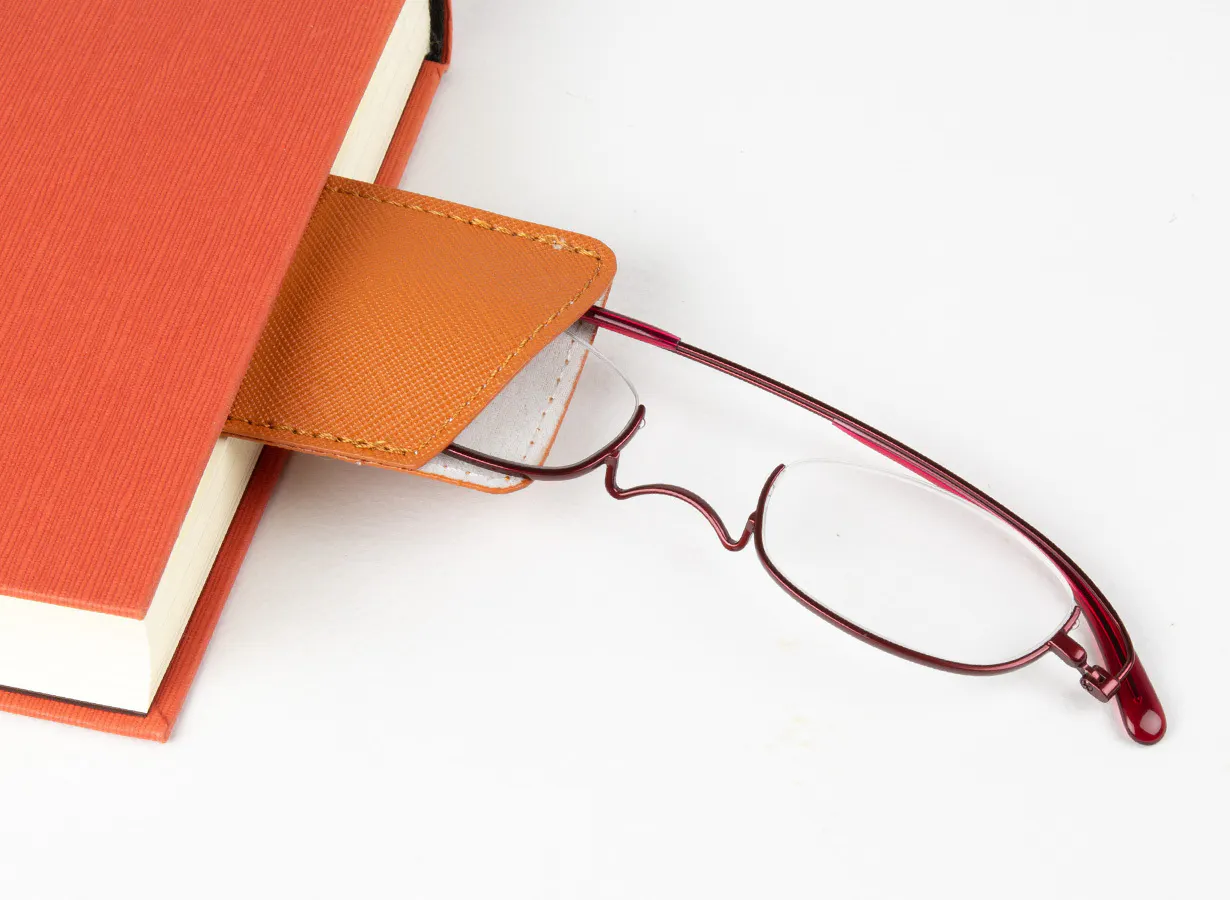 めがねのまち鯖江製の薄型めがね “ペーパーグラス”は独自構造により、折りたたみ時には本に挟む栞のように薄くなり「紙のように薄い」という特徴から名付けられました。