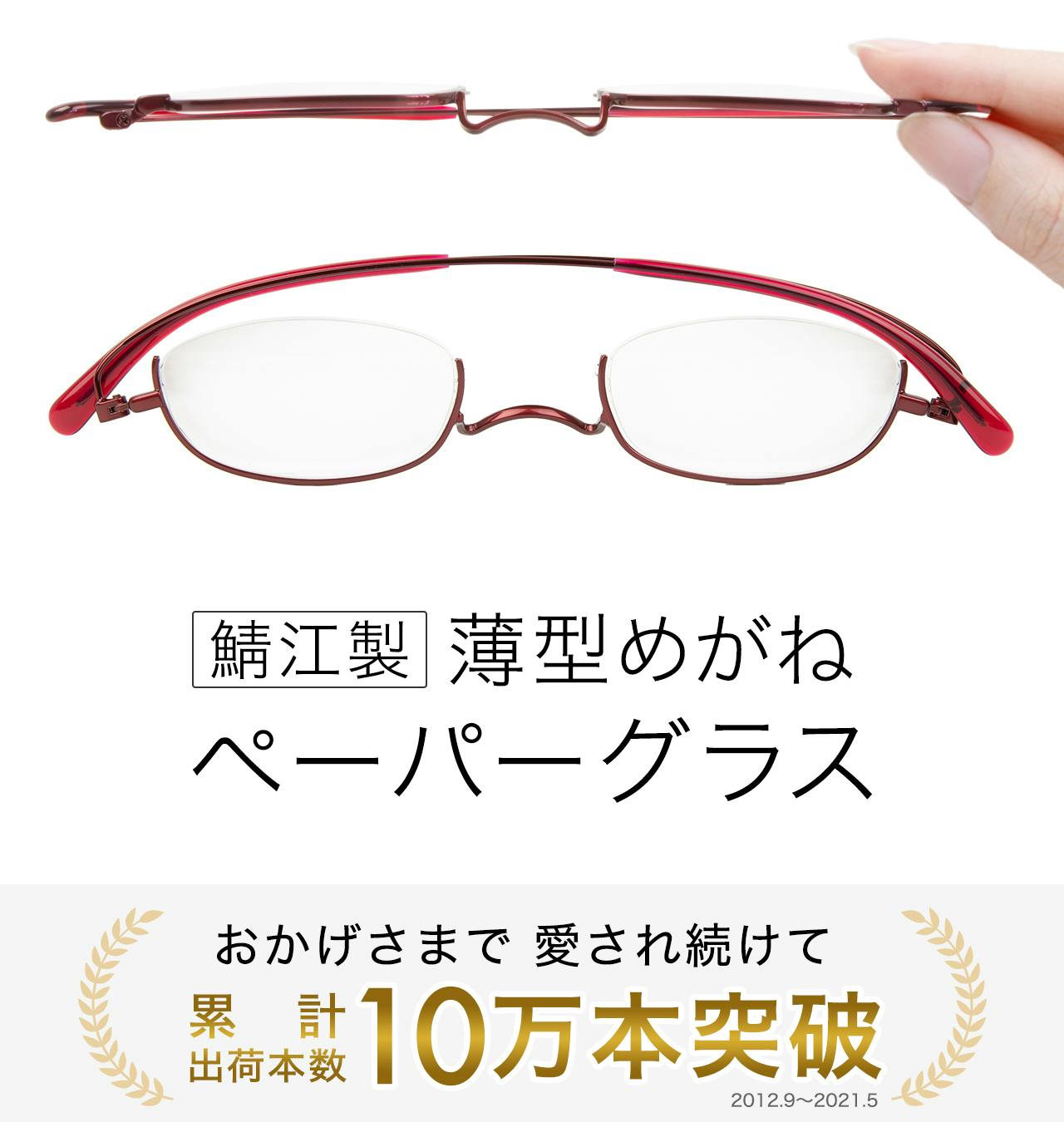 代表するプロダクトとして、2013年に薄さ2mmの老眼鏡「ペーパーグラス」のweb販売を開始。鯖江の眼鏡製造技術、弊社独自の技術を活かした機能性・デザイン性は高い評価を受け、2013年グッドデザイン賞BEST100受賞をきっかけに一時3ヶ月待ちとなる話題の商品となりました。