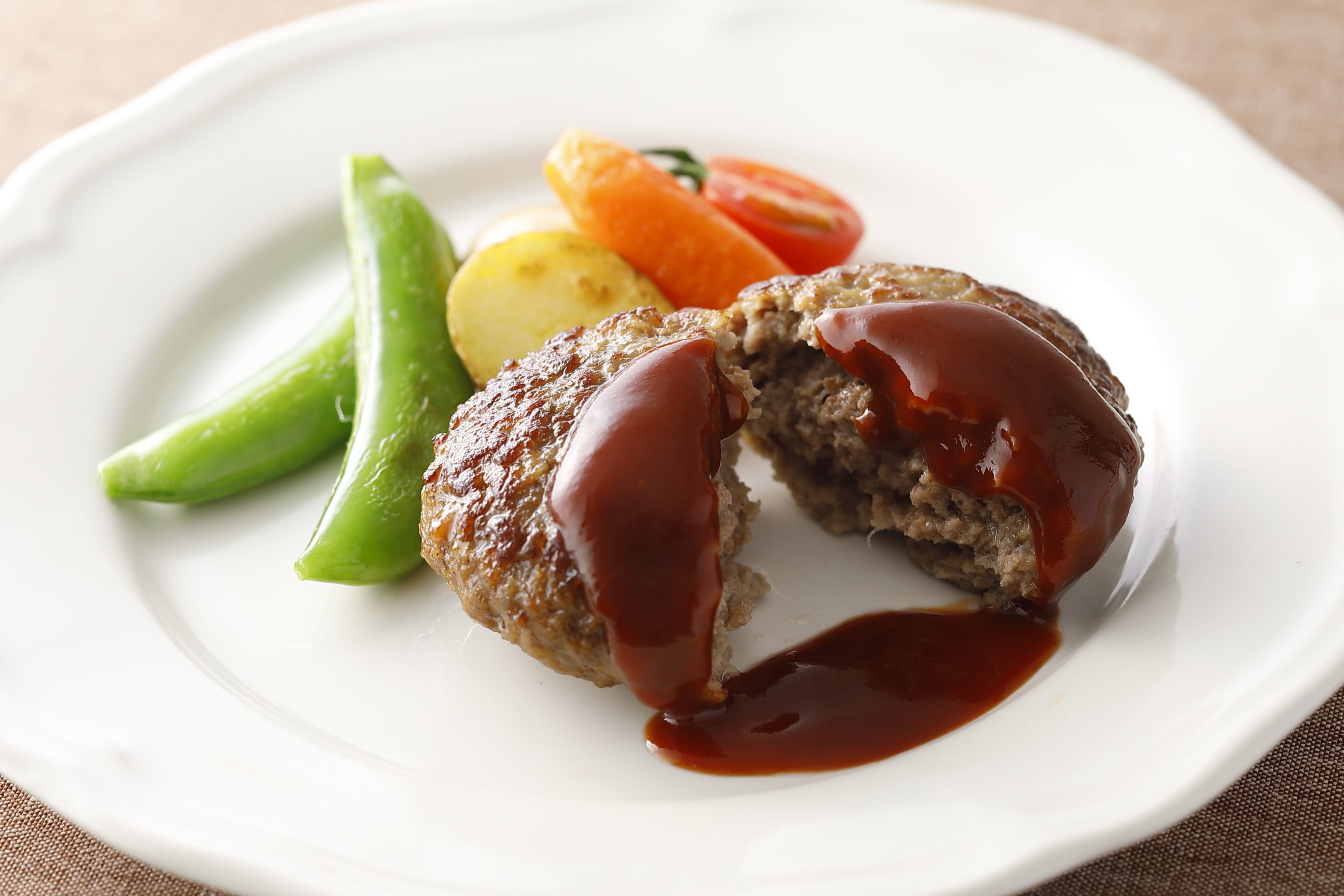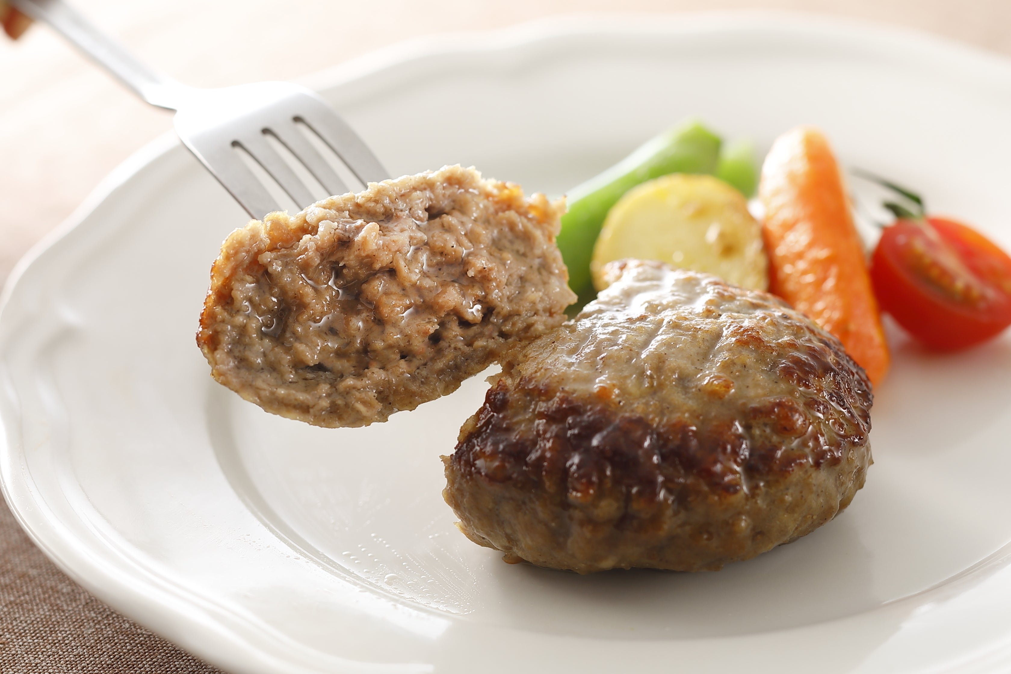 内部は高温の蒸気でじっくり火を通すことで、肉汁あふれるジューシーなハンバーグに仕上げます。
