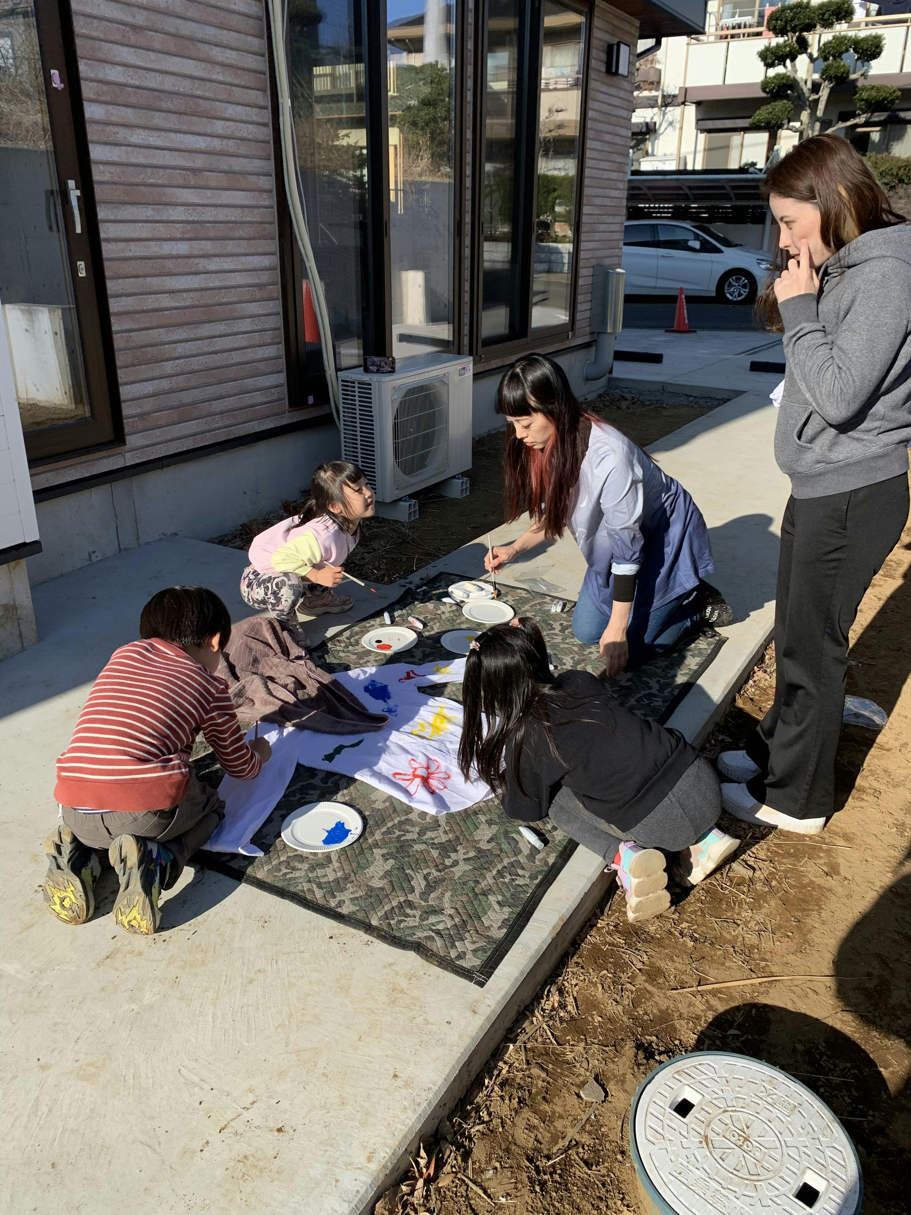 子供たちにお絵描きをしてもらっている様子です。