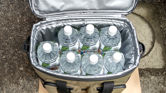 ハードのクーラーボックスに比べると保冷力は、落ちますが、1泊2日程度のキャンプであれば、サイズ感もちょうどよく、十分な性能です。