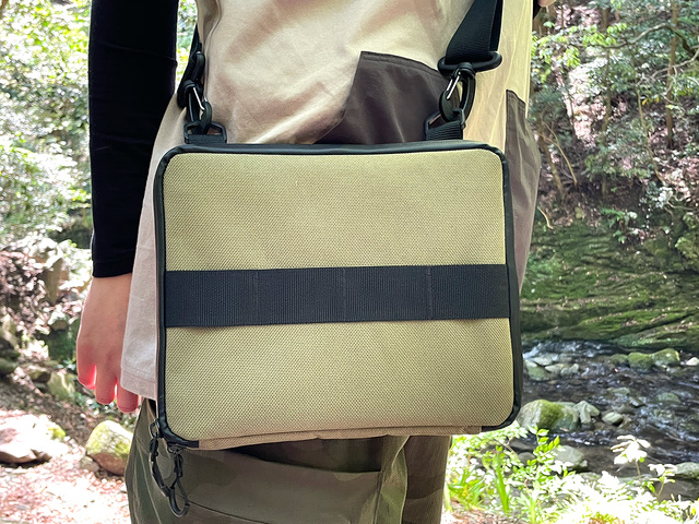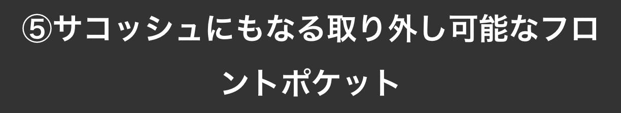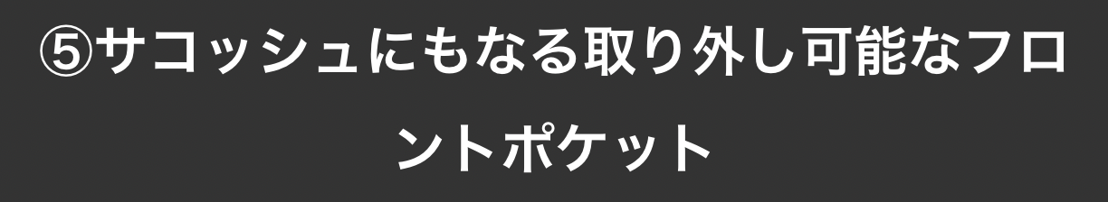 フロントポケットは、取り外して椅子やテーブルに引っ掛けたり、サコッシュとしても使うことができます。