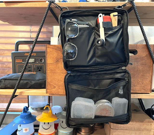 スーパーに背負って持っていけば、キャンプの買い出しをそのまま入れられるので、めちゃくちゃ便利です。