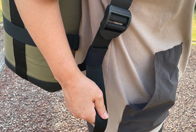 バックパックでの使用時のにこだわり、しゃがんでもゾルゲクーラーがずれにくいフィット感を実現しました。