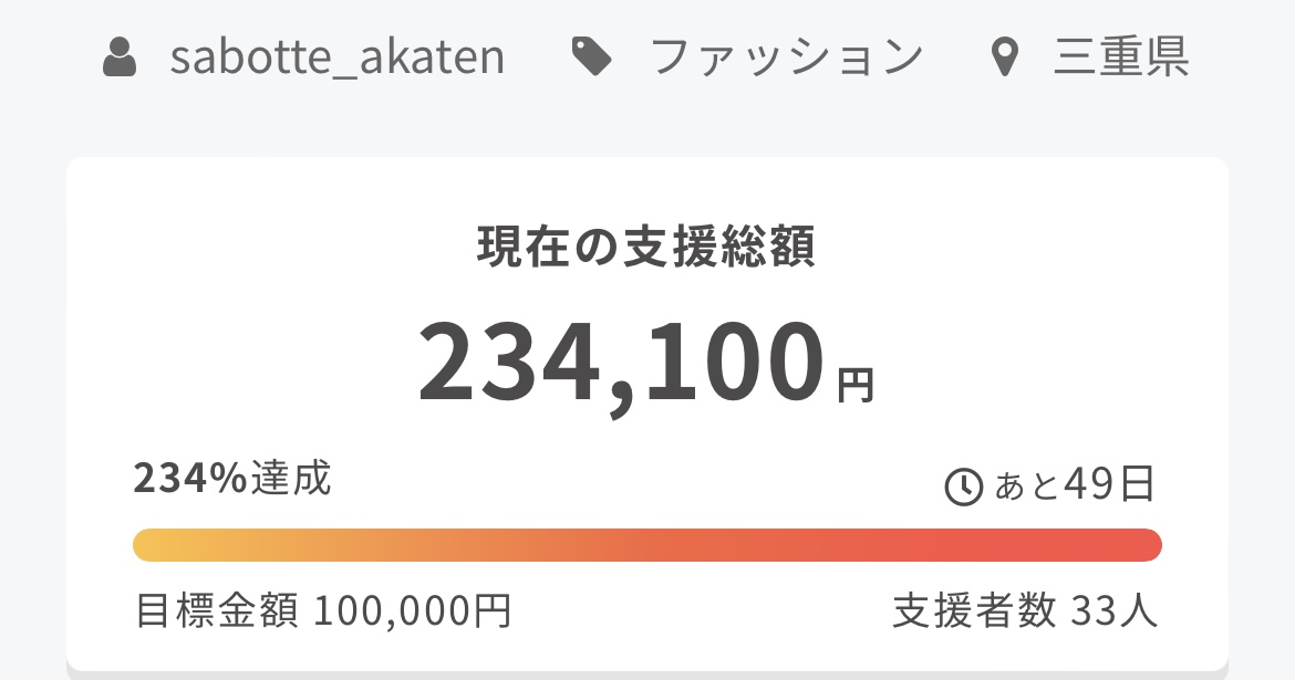 プロジェクトの目標金額はかなり厳しい目標だと思いますが、10万円に設定させて頂きました。
