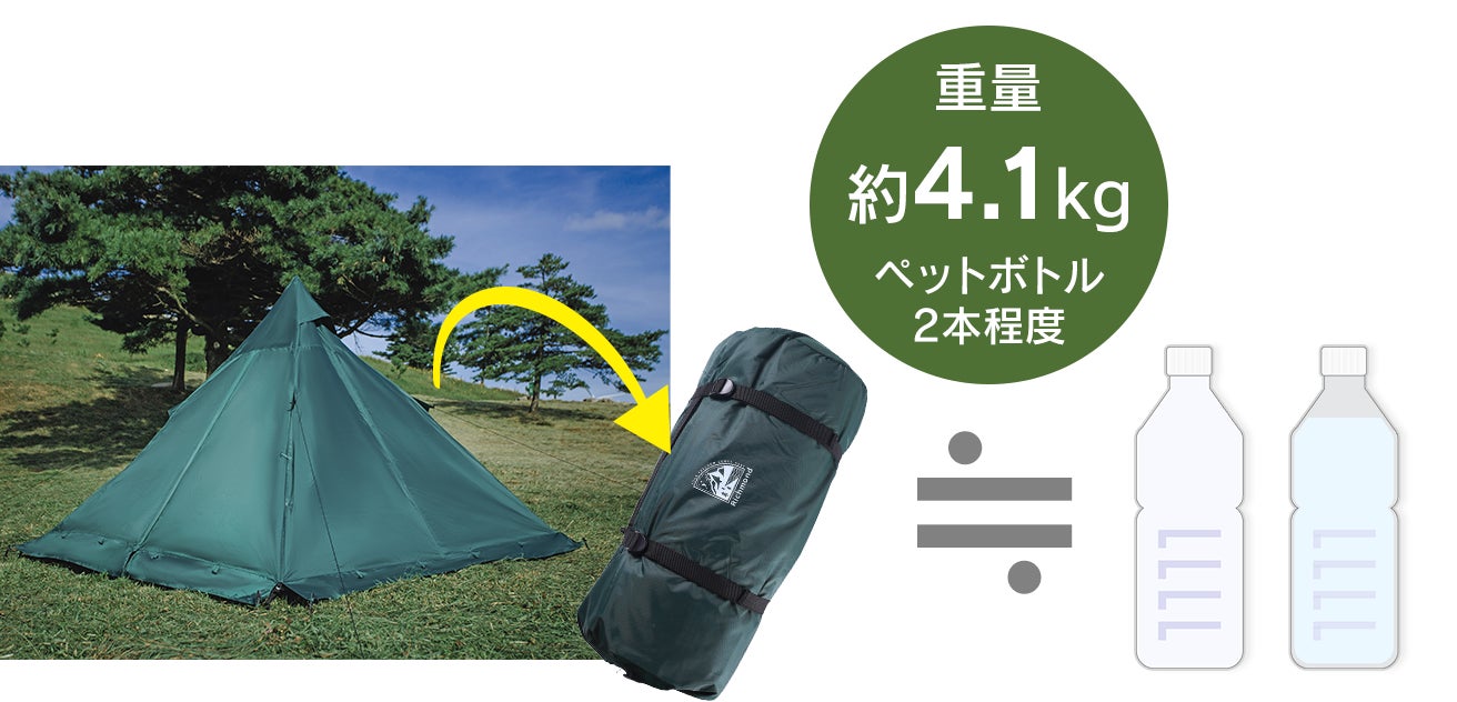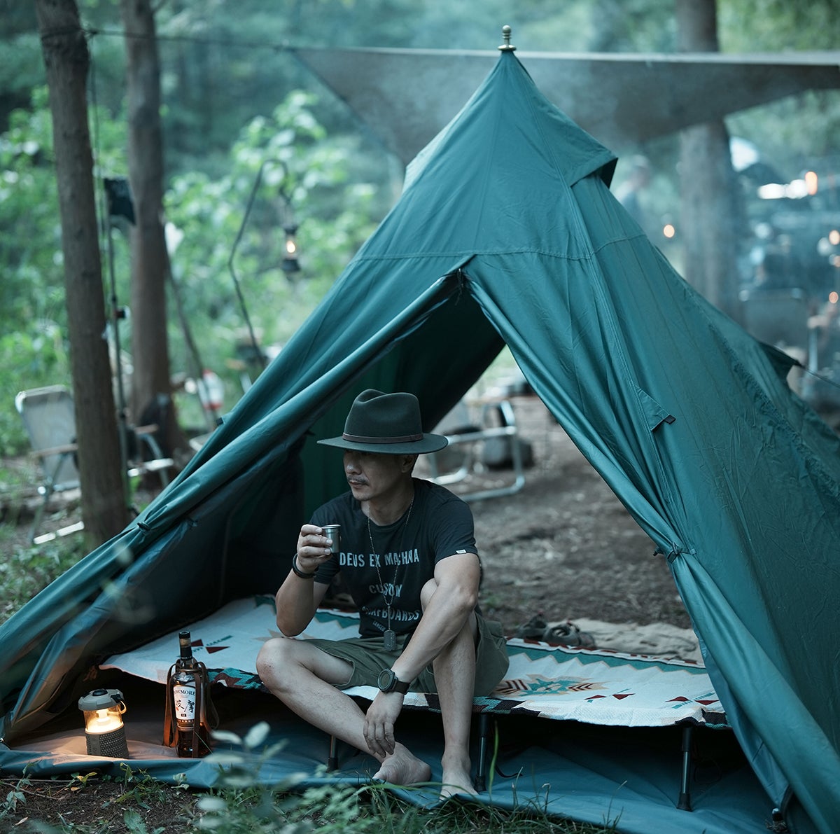 【ゆったり快適一人用テント】はティピー型のテントなので設営も簡単。