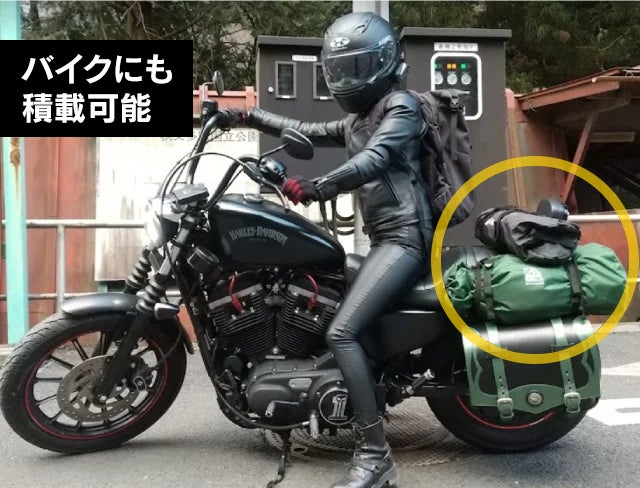 専用バッグを使えばバイクや自転車に乗せても邪魔にならないほど道具一式がコンパクトにまとまるので、キャンプツーリングでも大活躍してくれます。