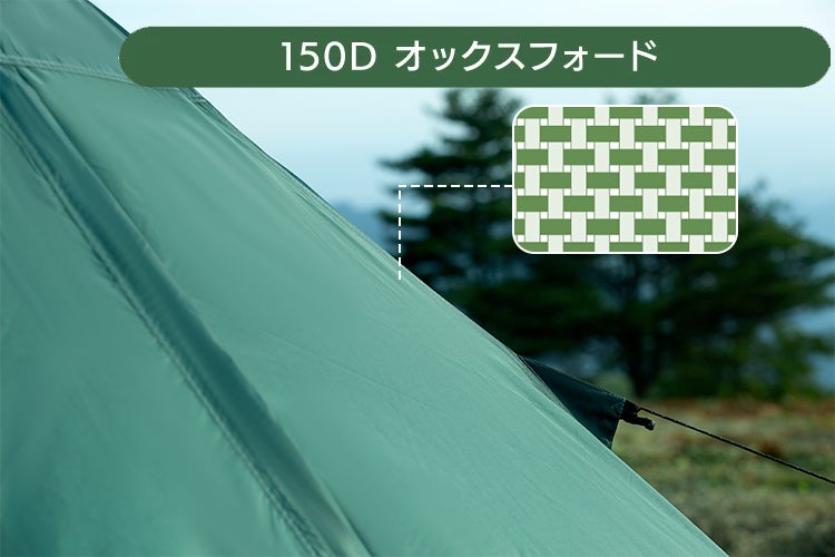 【ゆったり快適一人用テント】はフライシートに150Dのオックスフォード生地を採用。
