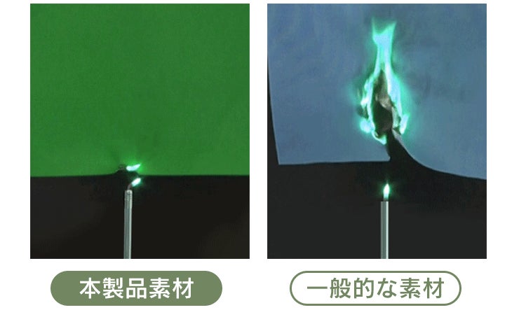 これは点火すると着火点から255mm以内、且つ4秒以内に火が消える生地に与えられる検査証明なので、寒い冬にテントの近くで薪を焚いて暖を取っても引火の心配はありません。