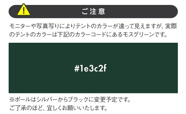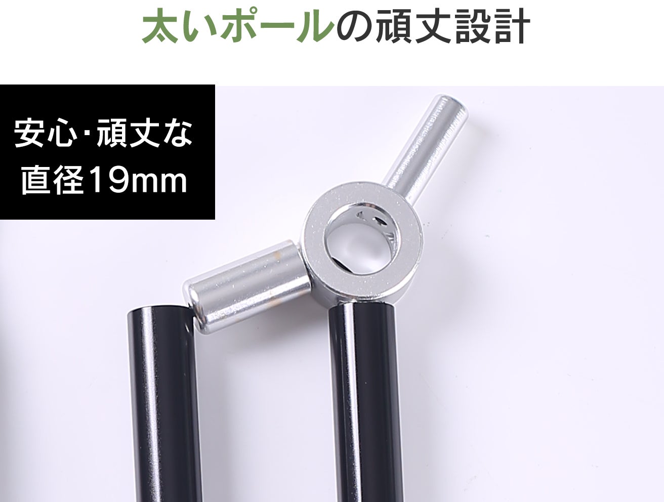 【ゆったり快適一人用テント】のモノポールは太さ19mmの極太仕様(実際のモノポールのカラーは黒を予定しています)。