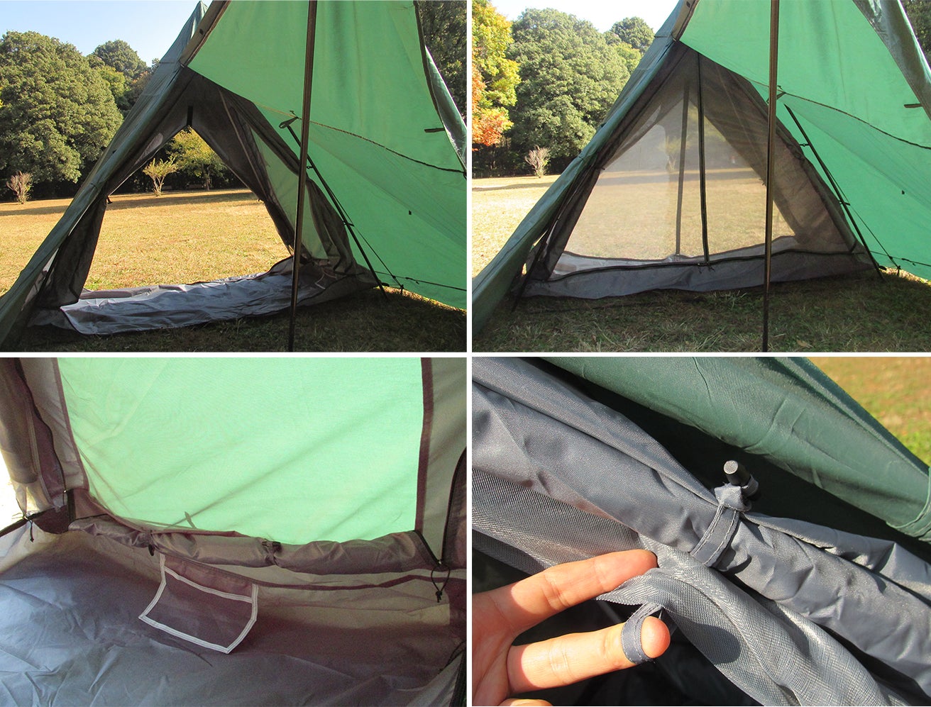 標準付属のインナーテントと比べて、全面メッシュと全面クローズシートの2重構造。