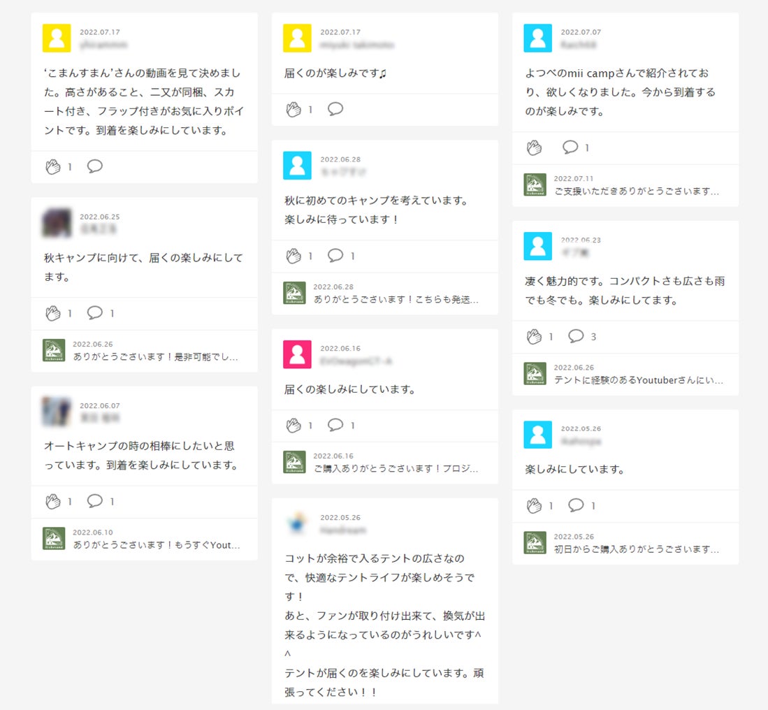 前回のクラウドファンディングでも、多くのご支援者様からレビューをいただきました!