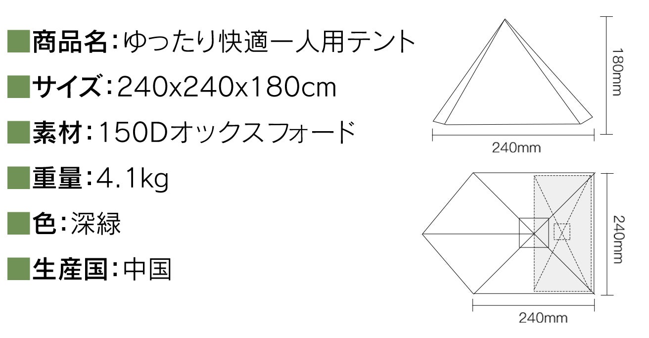 ※「ゆったり快適一人用テント」とは別売りのオプション商品になります。
