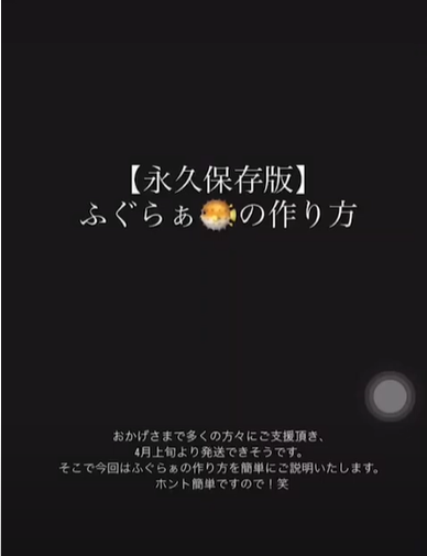 2023/03/25 12:30改めまして、本当にたくさんのご支援ありがとうございます!さて、プロジェクト期間も残りわずかとなりました。4月中旬以降、随時皆様のお手元に「ふぐらぁ」を届けて参りますが、その前に・・・・「折角、ふぐらぁ買ってみたけど、どうやったら美味しく作れるの??」そんな疑問にお応えすべく、「永久保存版 ふぐらぁの作り方」の動画を制作してみました!!そもそも、調理自体はすごく簡単なのですが、やはり皆様に美味しく召上って頂きたく、ポイントを紹介してますので是非ご覧下さい!↓【Youtube】https://www.youtube.com/watch?v=qFhgRyUcrtU 【Instagram】https://www.instagram.com/stories/highlights/18019634641517437/引き続きどうぞよろしくお願いいたします!! もっと見る